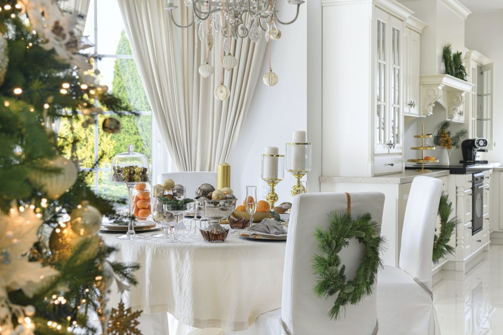 Wigilia Białej Damy – elegancki dworek urządzony w bieli, beżu i złocie gotowy na święta