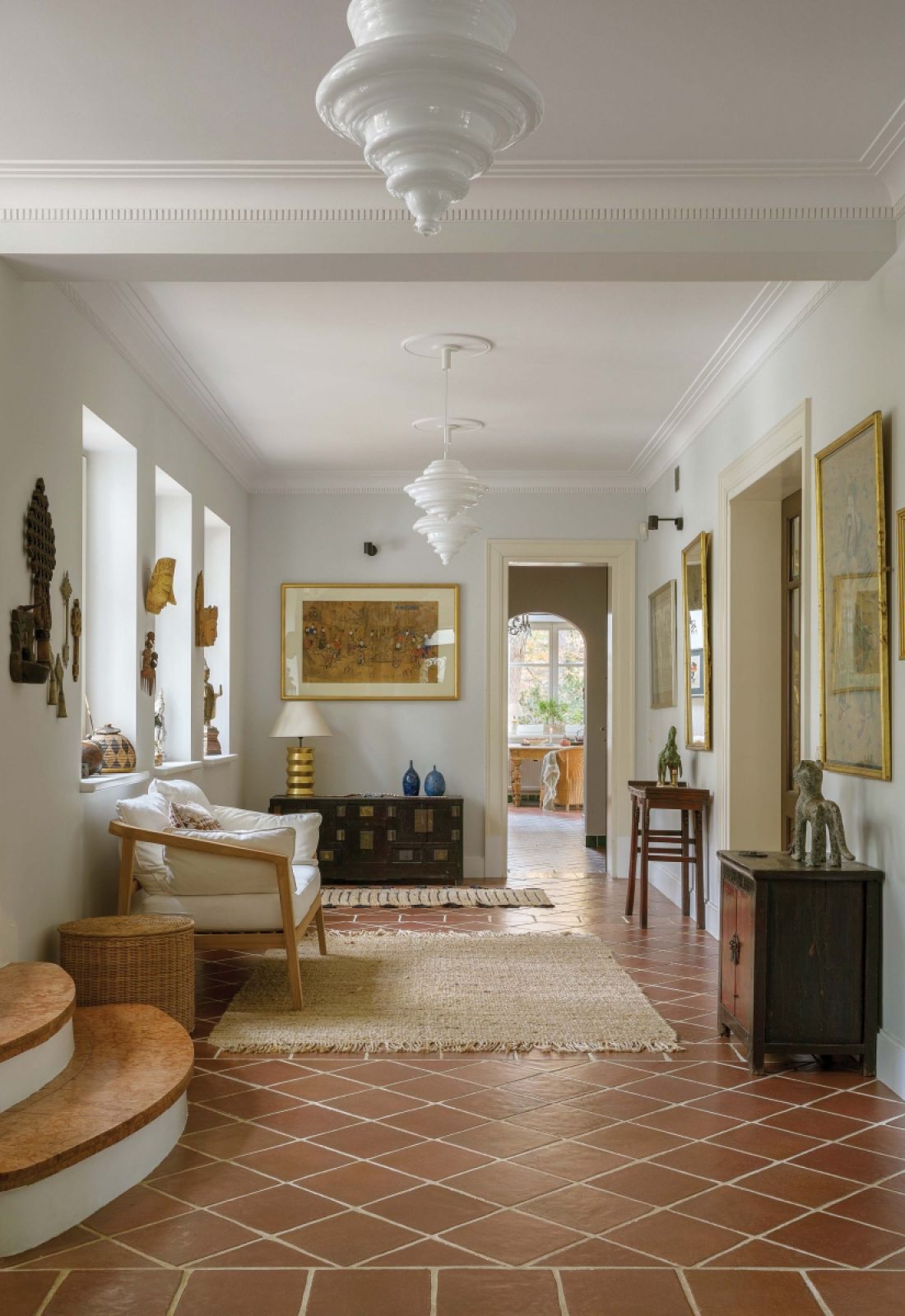 Gdy Teresa – z zawodu projektantka wnętrz – wymyślała wystrój domu, była pod mocnym wpływem stylu śródziemnomorskiego. – Dużo wtedy jeździliśmy na południe Francji i do Włoch – wspomina. – Chciałam mieć taką francuską willę z dużymi oknami i tarasami. Żeby latem można było spędzać czas na zewnątrz, a w środku panował lekki, nieco rustykalny klimat. Stąd w domu terakotowe podłogi, cegła, kamień i drewno. Na ścianach panowała złamana biel i odcienie pasteli. W dużym salonie kolor czekolady ocieplał wnętrze i optycznie je zmniejszał.