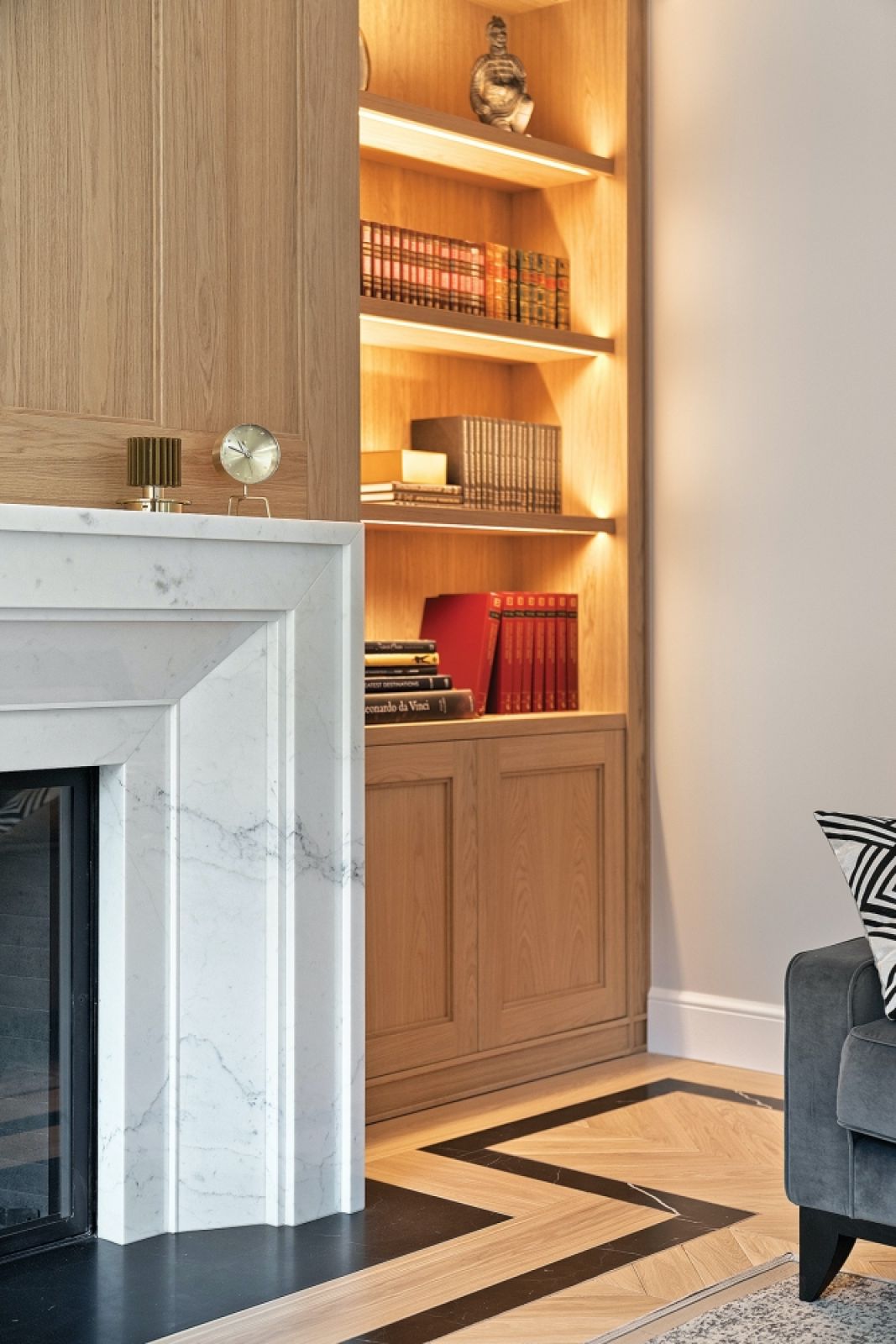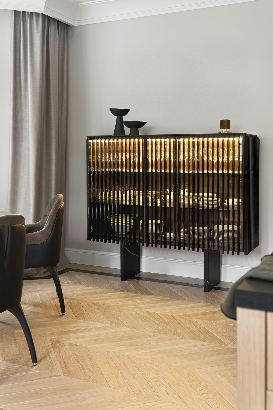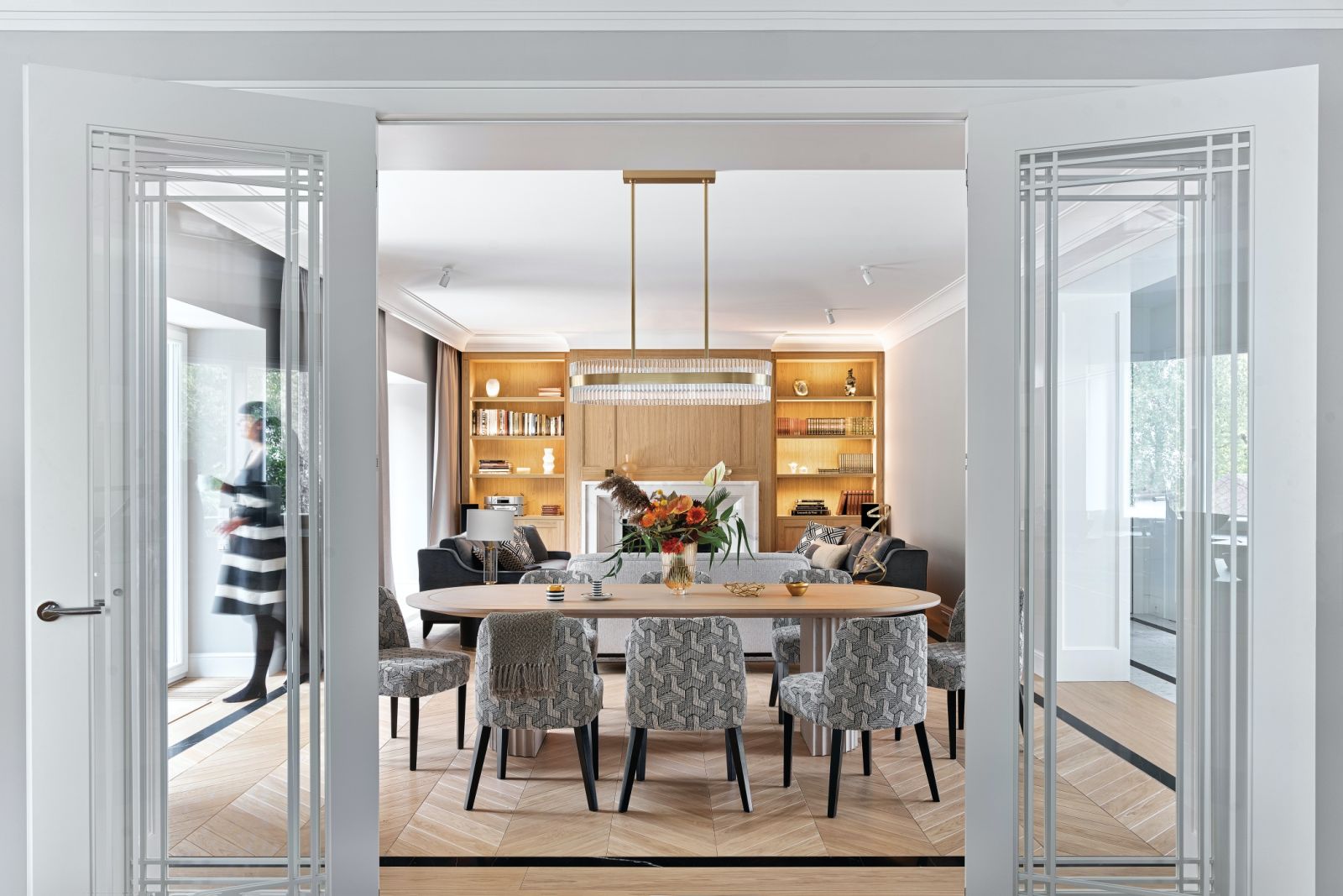 Szlachetne materiały, stonowane kolory i inspiracje art déco – eleganckie wnętrza modernistycznej willi na Mokotowie
