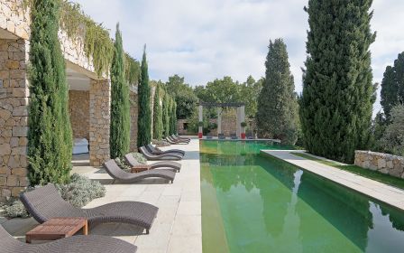 Dom ma 14 sypialni (w tym 8 typu suite, każda urządzona w innym stylu), domek gościnny, hammam, dwa baseny (tzw. infinity pools), jacuzzi na 16 osób, zewnętrzną kuchnię… Do tego niemal setka starych drzew oliwnych i rozległa winnica otaczająca posiadłość.