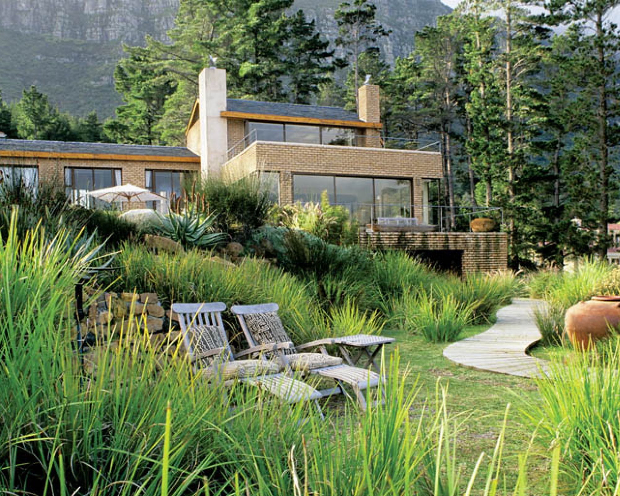 U stóp Góry Stołowej z widokiem na ocean – oto oaza spokoju Dom położony był wysoko nad Cape Town. Inspirowany architekturą Franka Lloyda Wrighta przytulił się do masywnych skał Góry Stołowej, z przodu zaś miał taras z basenem, otoczony lasem piniowym. – Wyszliśmy na taras, a tu krajobraz jak z jakiegoś magicznego obrazu – wspomina pani Uschi. – W dole panorama portu i zatoki. Na horyzoncie błękitne morze i majaczący cypel – opowiada. Choć mieli pracę w J