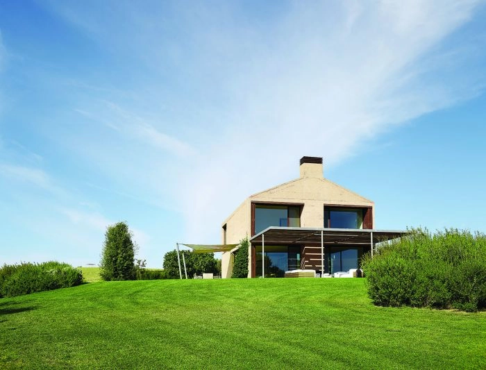 Willa z pogranicza stylów toskańskiego i prowansalskiego ma przewiewne, słoneczne wnętrza, kamienne podłogi i pokoje w odcieniach bieli, piasku i beżowych szarości.