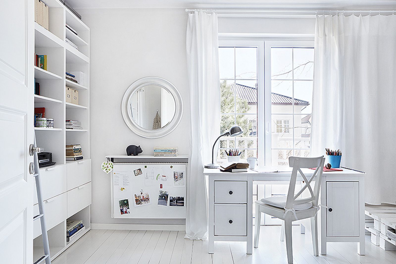 Zmianom nie oparło się żadne pomieszczenie. Córka błaga matkę, aby dać już spokój, bo można zwariować! Jej królestwo przeobrażało się pięć razy. Jednak o ostatnią metamorfozę poprosiła sama – panieński pokój z łóżkiem na paletach. Po drugiej stronie biurko z lustrem z IKEA. – Nie chciała tylko, żeby zmieniać mu kolor, bo malowanie kupowanych dodatków to w tym domu niemal tradycja – tłumaczy Agnieszka.