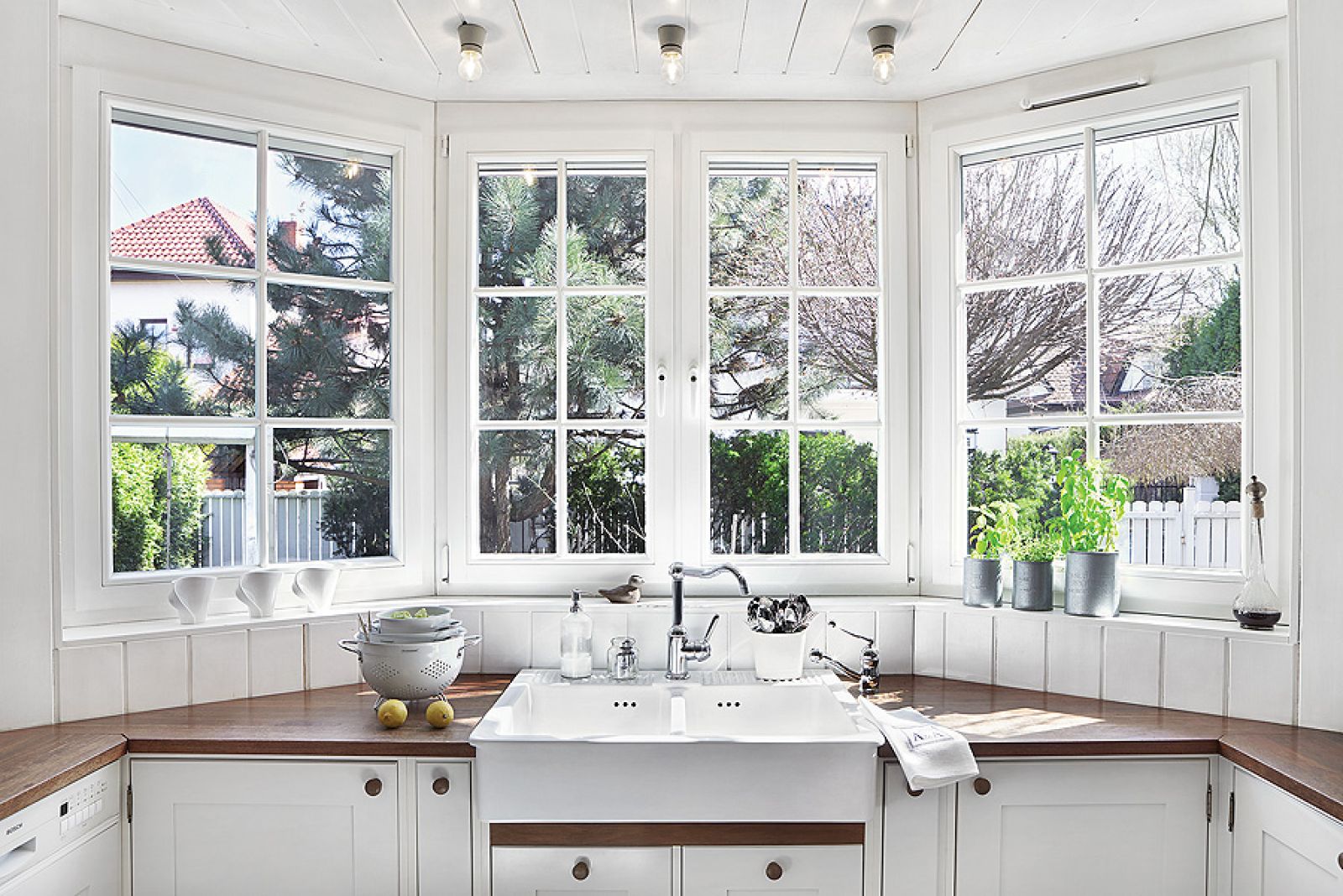 Teraz można było poszaleć z białą boazerią na ścianach i suficie. – Nikomu nie przeszkadza to, że dechy pękają. Taką mają naturę – dodaje z uśmiechem Agnieszka. Ale kuchnia, choć powiększona, nie jest wzorem praktyczności. – Okno wykuszowe wymusiło skosy na blacie – opowiada projektantka. – Na szczęście właścicielka, tak samo jak ja, przedkłada urodę nad funkcję (jest gotowa chodzić nawet w za małych butach, jeśli oszalała na ich punkcie).