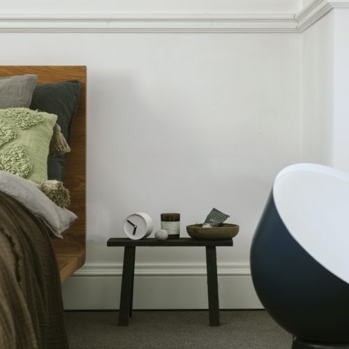 – Kiedy zrezygnowałam z masy przedmiotów, różne elementy, w tym nasza piękna stolarka, wysunęły się na pierwszy plan. Zrobiło się szlachetnie, kontrastowo w stosunku do ciemnej podłogi, ciekawiej – mówi Anna. – Ale duża część mebli pozostała. Z sentymentu – bo meble wykonane przez tatę są wyjątkowe. Część rzeczy zwyczajnie „wyemigrowała” do domu rodziców. Na przykład zabudowa i tradycyjny angielski kominek w salonie. Ma to swoje plusy, bo jak zatęsknimy za dawnym wystrojem, to oglądamy go u nich.