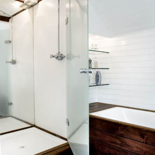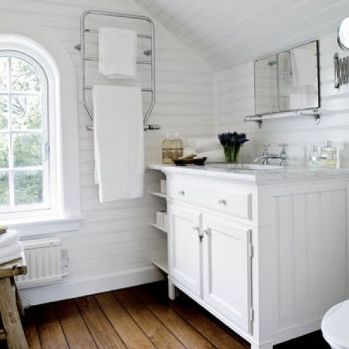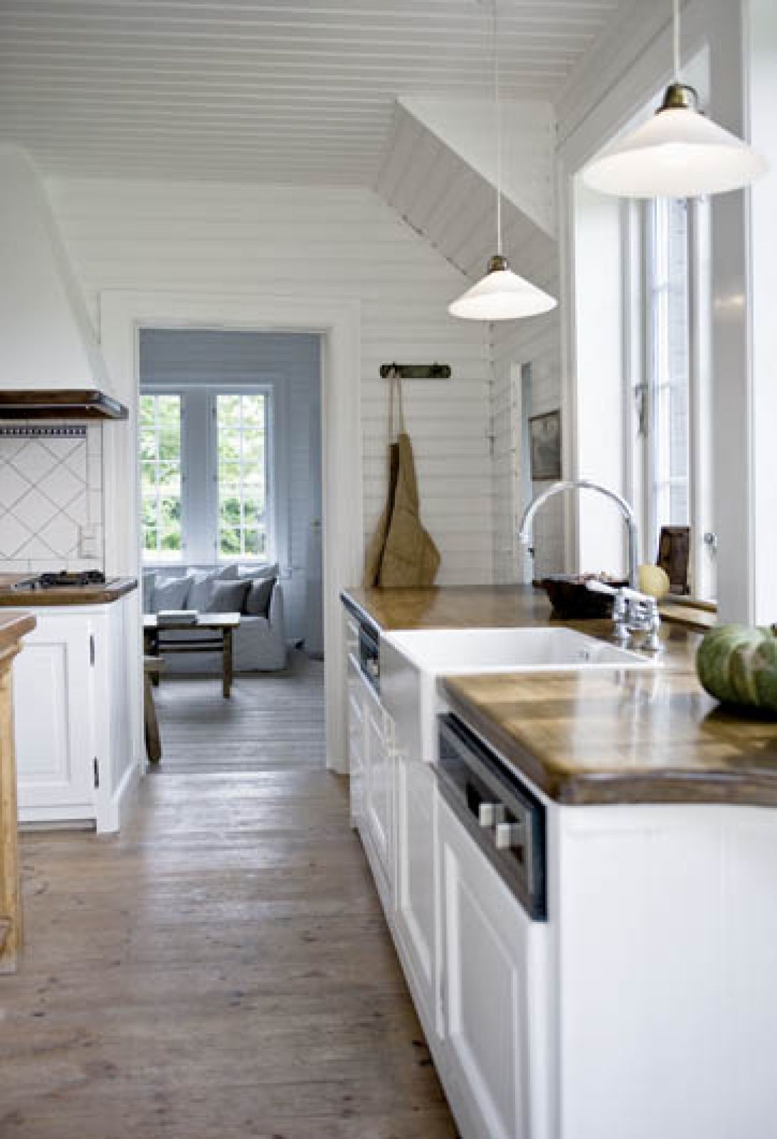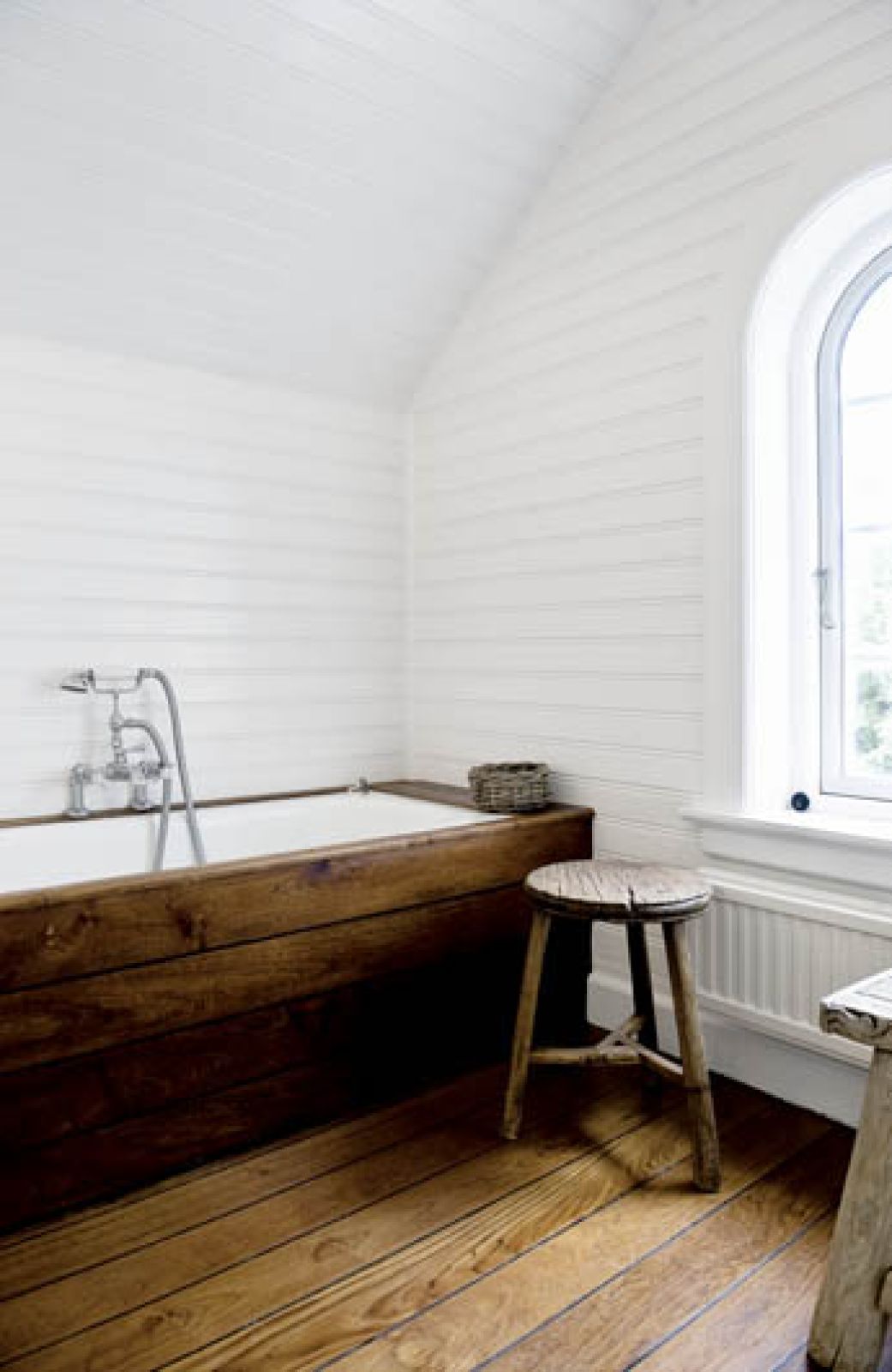 Thomas urządził się tak, by wnętrza pasowały do widoku za oknem. Przeważają jasne kolory (biel, beże, barwy ziemi) i surowe spękane drewno, typowe dla stylu New England.
