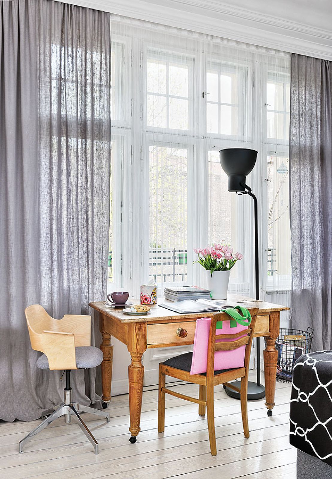 Jeżyckie mieszkanie w kamienicy Sylwia postanowiła urządzić w bieli. Nie wszystko poszło zgodnie z planem. Stół do jadalni na zdjęciach w internecie był mleczny, ale w sklepie okazał się kremowy z przecierkami, więc wzięli ładniejszy, lecz... czarny. Potem do renowacji oddali żeliwne kaloryfery sprzed 100 lat, miały wrócić białe. Były tak ciężkie, że na drugie piętro wnosiło je z mozołem sześciu chłopa. Okazało się, że są… jasnoszare. – Nie mieliśmy sumienia powiedzieć ekipie, że powinna je znów wytaszczyć i przemalować. Dzięki pomyłce pojawiła się szarość – opowiada.