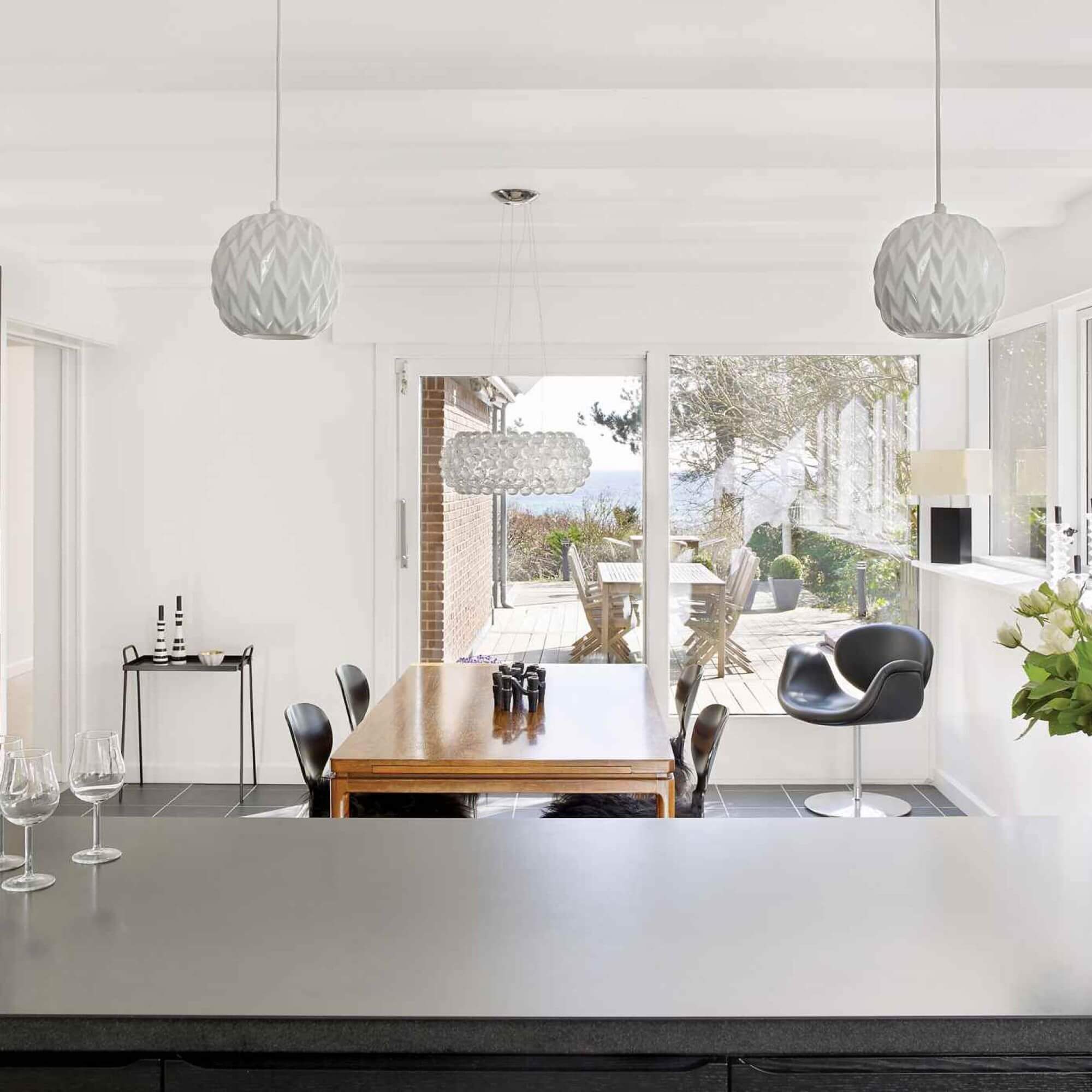 Lotte i Kenneth marzyli, by wstawać i zasypiać, widząc morze za oknem, słysząc szum fal. Ich poprzedni dom stał 3 kilometry od plaży, więc kiedy pomyśleli o przeprowadzce, interesowały ich tylko działki przy wydmach. Obejrzeli ich kilka, ale to dom w Greve na południe od Kopenhagi od razu ich urzekł. Morze było widać już od drzwi wejściowych. Od razu postanowili, że zrobią wszystko, by nic nie odciągało uwagi od wody. Skandynawska prostota we wnętrzach wydawała się idealna.