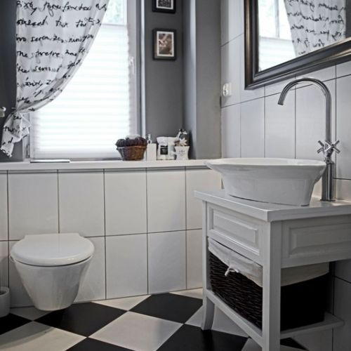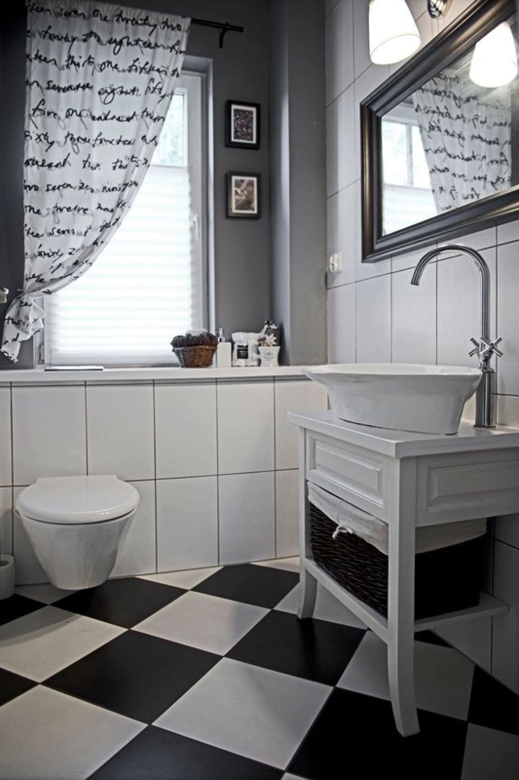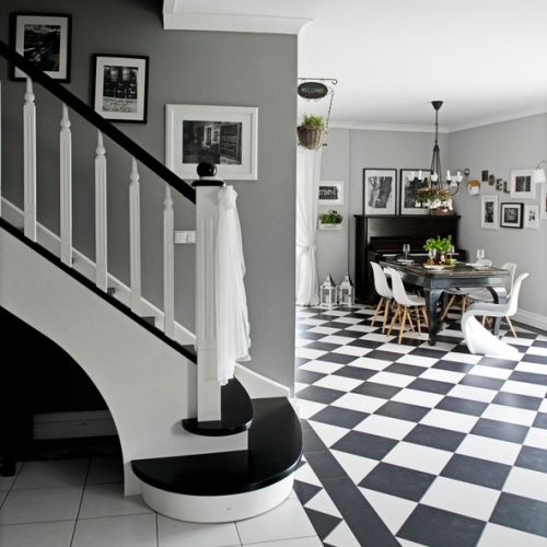 Skandynawskie szarości, naturalne dodatki, podłoga w karo