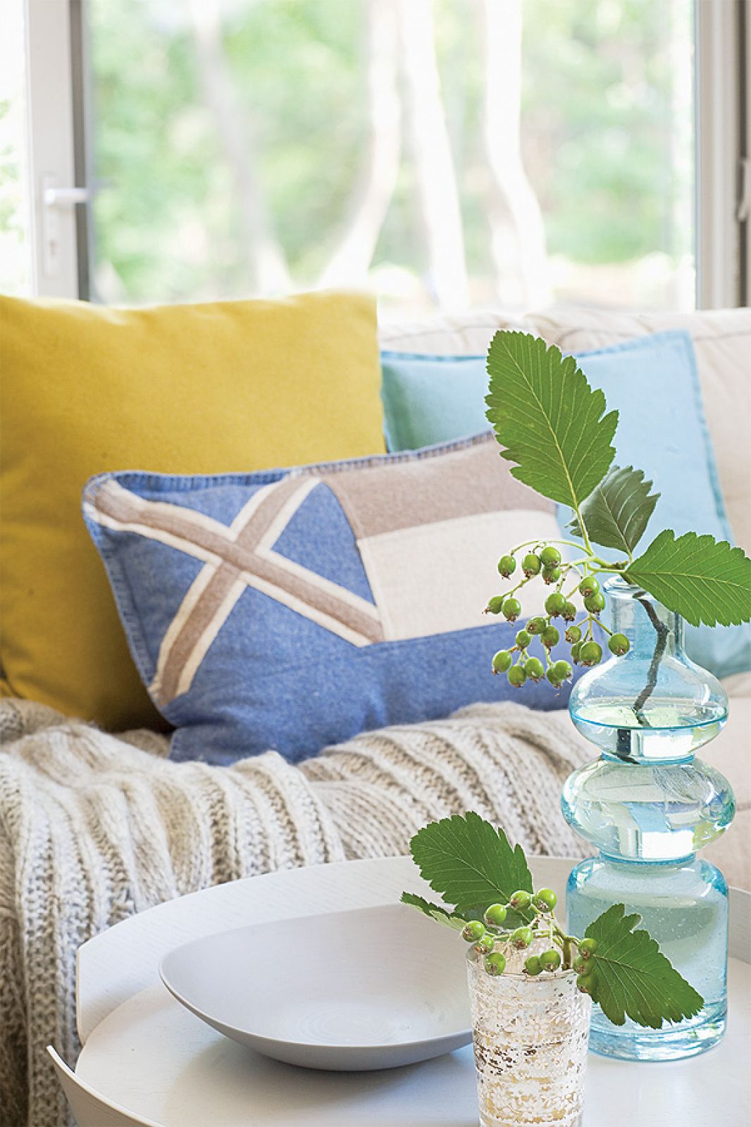 Jedną taką szwedzką lampę, z białym pierzastym abażurem na drewnianej nodze, przywiozła do Polski. Resztę rzeczy zamawia przez internet, na przykład w Westwing. Do tego meble z IKEA, NAP, BoConcept, rzeczy w różnych cenach i z różnych półek, a wszystko do siebie pasuje. Tyle że skandynawski dom Kariny, chociaż w chłodnych białych odcieniach i szarościach, w porównaniu z tymi budowanymi na Północy jest bardzo kolorowy. – U nich biel jest wszechogarniająca. Ja na taki efekt czekam co roku do zimy, gdy zieleń za oknem przysypie śnieg. Wtedy dom robi się naprawdę jasny i świetlisty.