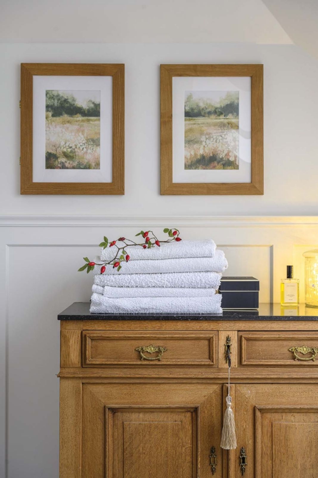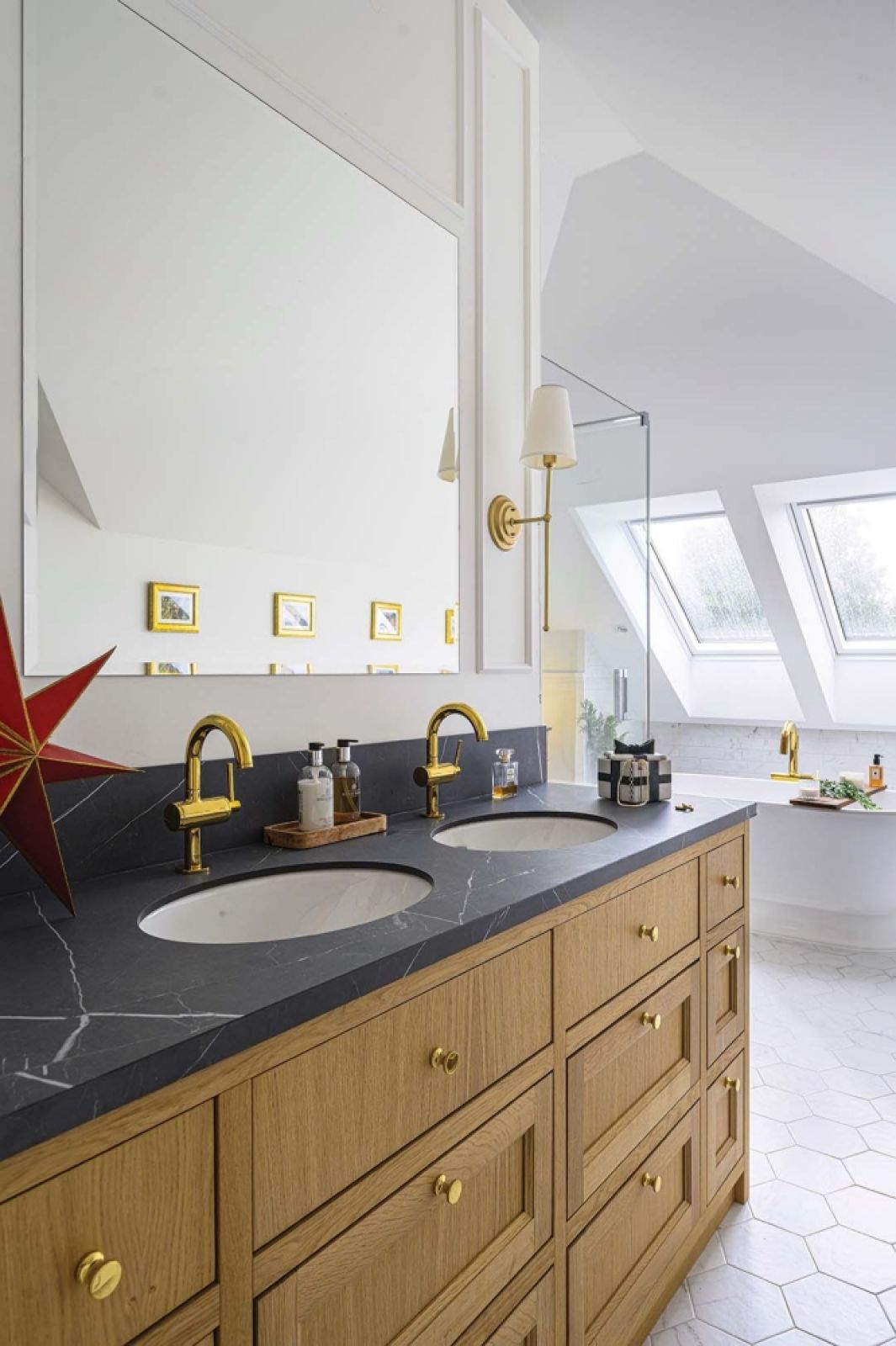 W domu Oli przytulność i estetyka grają ogromną rolę, ale nie mniejszą – funkcjonalność. Dlatego współtworząc projekt domu, wyposażyła go w ciekawe, choć nie zawsze widoczne rozwiązania. Choćby zsyp na… pranie zamaskowany obrazkiem. W ścianie łazienki odchyla się go i brudne koszulki pędzą rurą do kosza na pranie.