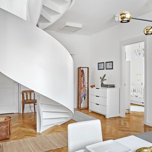 Mnóstwo pomysłów od polskich projektantów, bo są tak świetne, że nie ma potrzeby szukać innych za granicą. Do tego schody jak monumentalna rzeźba. Mieszkanie Beaty Sadowskiej na Saskiej Kępie.