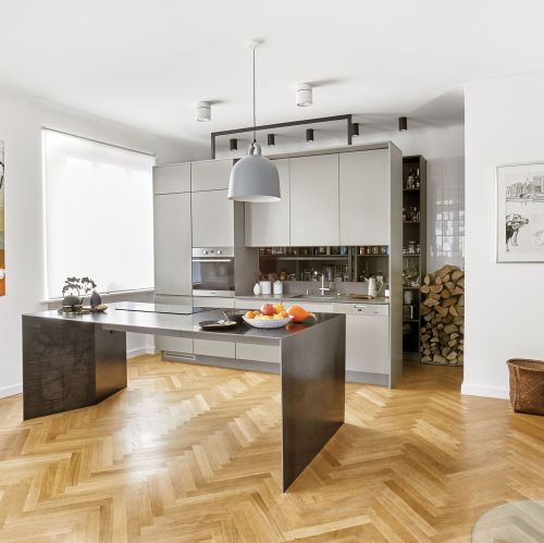 – Znajomi wiedzą, że mam fioła na punkcie zdrowego jedzenia, więc przynoszą domowe przetwory. Wcześniej ciągle czegoś szukałam, teraz setki słojów, toreb i butli mam przed oczami. Taka spiżarnia to rewelacja. Kuchnię kocha także z innego powodu. – Świetny projekt to jedno, ale trzeba go jeszcze zrealizować. Ja trafiłam na genialną ekipę, co prawda dopiero za trzecim razem, ale zawsze! Jeszcze dziś trudno mi uwierzyć w to, że pan Marek Porowski zrobił ją w dwa tygodnie!
