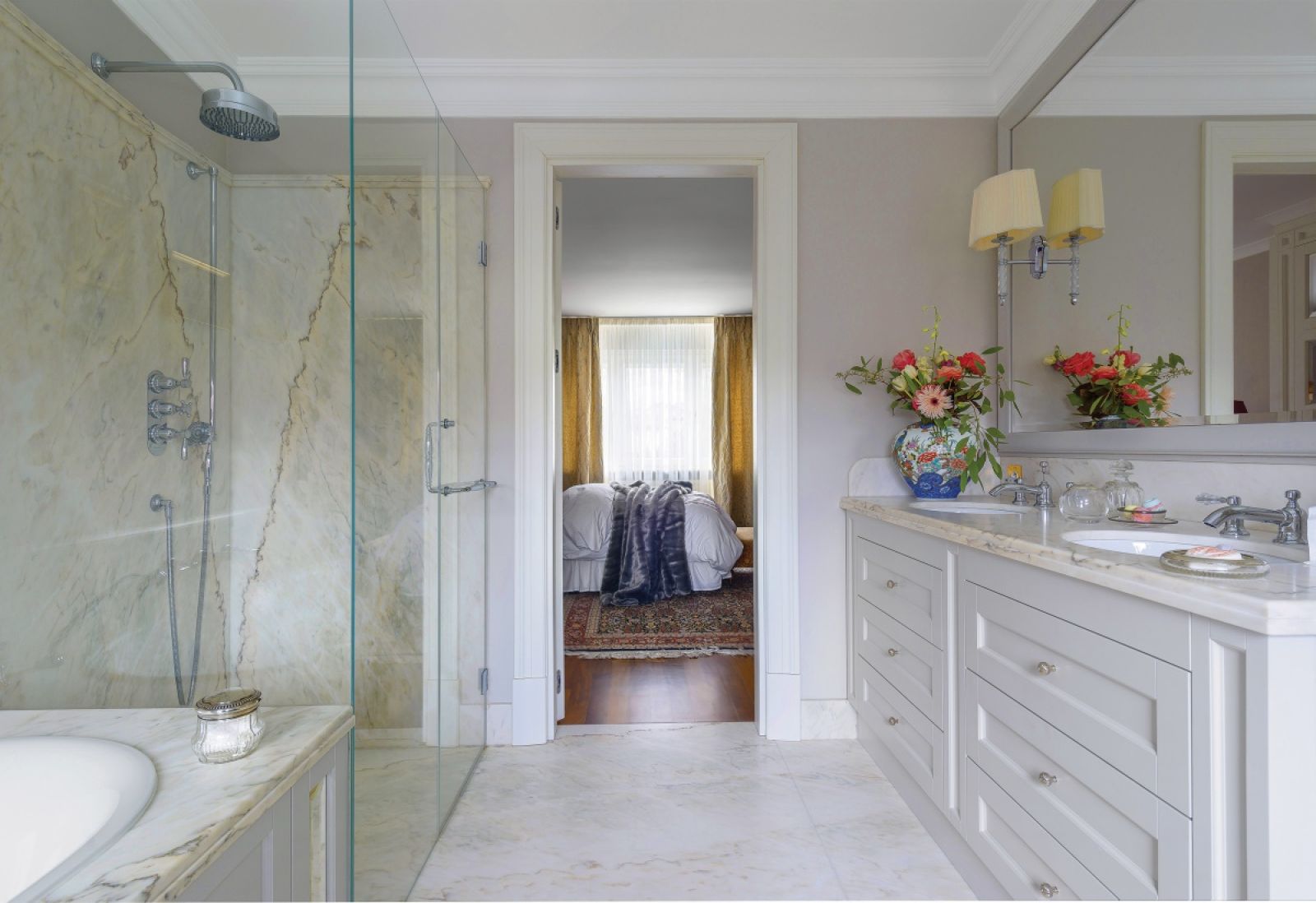 Projektantka ustawiła na nowo antyczne meble – dopasowała je stylem i zadbała, by właściciele nie czuli się wśród nich jak w muzeum. To nie eksponaty – bufet jest bufetem, kredens – kredensem. Stoją w nich naczynia, których Jola używa na co dzień, schowane są sztućce, obrusy i inne drobiazgi. Ewa zadbała też o najdrobniejsze detale. Klamki w drzwiach czy gałki w szafkach są z brytyjskiej manufaktury Beadmore, wszystkie robione ręcznie. Mosiężne włączniki i kontakty też z zacnej, angielskiej Forbes & Lomax. – Bawiło nas ich dobieranie, są jak biżuteria, tyle że dla domu – mówi projektantka. Całości dopełniły tkaniny prawdziwe – jak zasłony czy tapicerki Rubelli – i… udawane, czyli tapety Zoffany perfekcyjnie naśladujące jedwab.