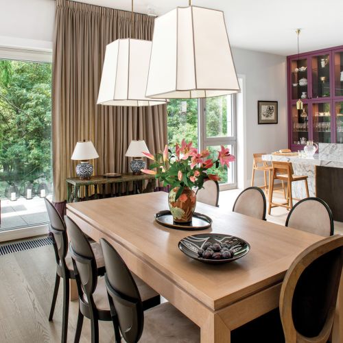 Elżbieta i Marek to ludzie światowi, znają trendy w urządzaniu wnętrz, mają swój gust i pasje. Zbierają duńską porcelanę królewską, mają kilka przykuwających wzrok przedmiotów z Azji. Dobrze czują się w eklektycznych wnętrzach, a nie w takich, gdzie rygor stylu narzuca całe komplety mebli i dodatków. Poza tym część wyposażenia przechodzi z nimi z mieszkania do mieszkania i trzeba było je dobrze dopasować. Dlatego kilka tapicerowanych mebli, do których mają sentyment, zyskało nowe szaty. Nie mają też problemu z łączeniem rzeczy z różnych półek cenowych – pod jednym dachem żyją sobie marmury i stoliki z IKEA.