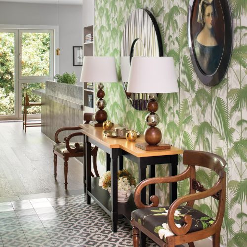 Z powodu częstych wyjazdów właściciele musieli – z ubolewaniem – zrezygnować z roślinności we wnętrzu. Widoki na park za oknem trochę im to wynagradzają. Projektantki wzmocniły ten efekt, dobierając w holu tapetę w palmowe liście. – Wyprzedziłyśmy trend, który mamy dzisiaj – śmieje się Małgorzata. – Motyw egzotycznej roślinności w dekoracji wnętrz modny jest od jednego, dwóch sezonów, a ten apartament ma już kilka lat. Tapety wybrałam w konkretnym celu. Nigdy nie proponuję klientom czegoś tylko dlatego, że jest akurat modne i lansowane, jeśli czuję, że im by nie odpowiadało. Nie robimy scenograficznych, efektownych wnętrz, tylko takie, w których właściciele będą się dobrze czuli.