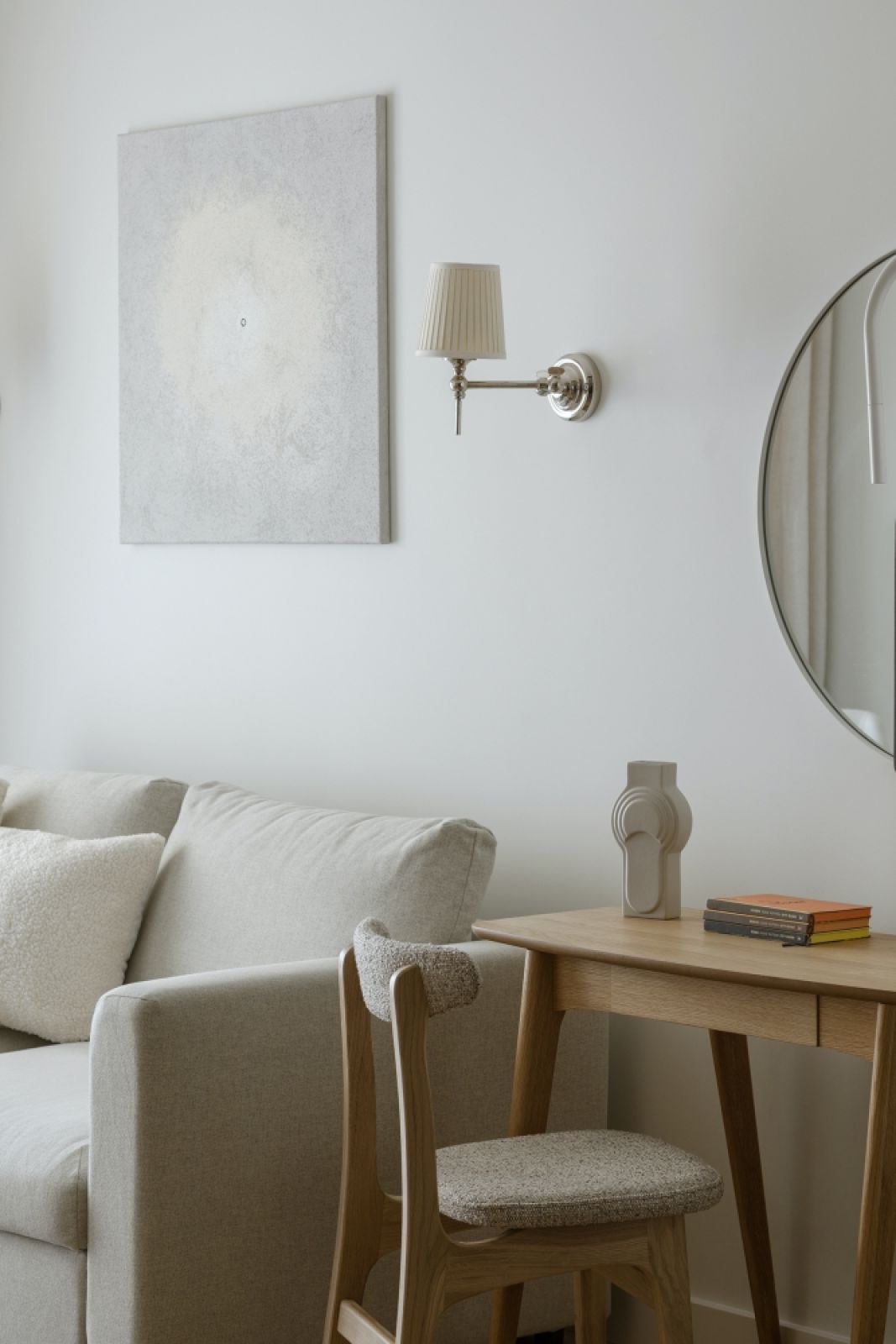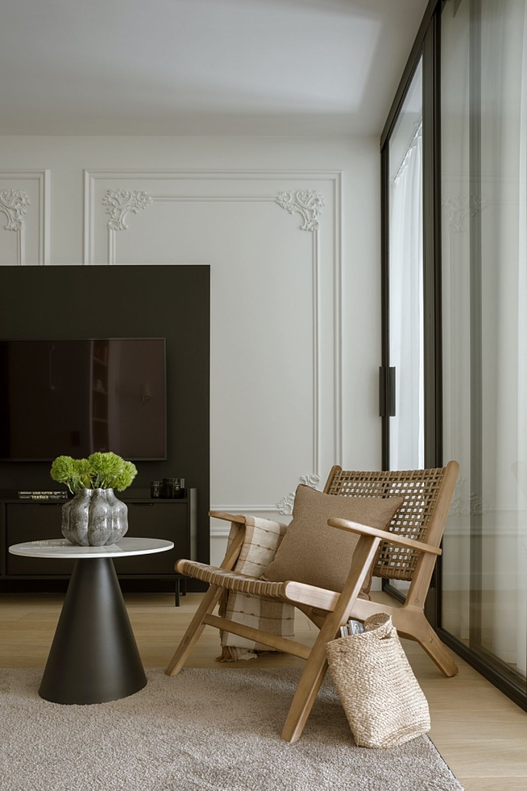 Właściciel lubi klasyczne wnętrza, ale nie chciał wersji zbyt ciężkiej, historycznej, ze stylowymi meblami. Owszem, miały się w nim znaleźć elementy takie jak sztukaterie czy jakiś mebel typu ludwik, ale wszystko miało być zmiksowane z elementami lekkimi, nowoczesnymi. Przede wszystkim chciał, żeby jego mieszkanie było ponadczasowe i mogły w nim zamieszkać zarówno osoby młode, jak i dojrzałe. Zależało mu na jasnych, stonowanych kolorach.