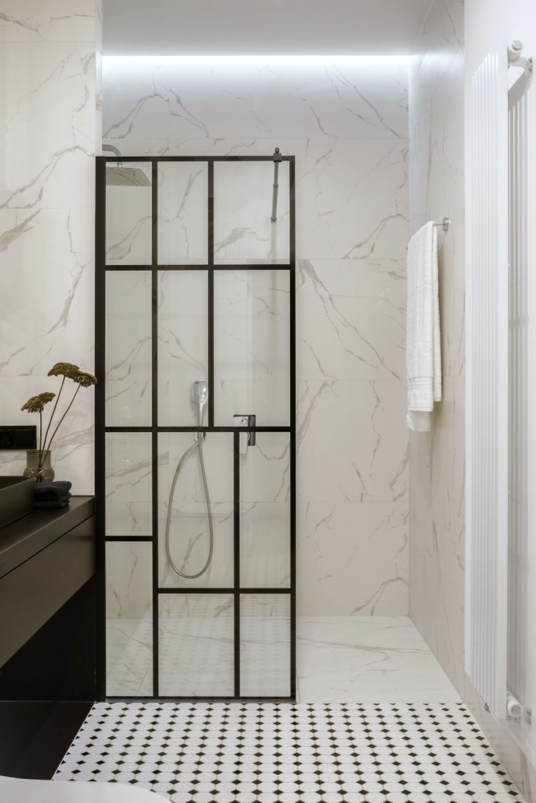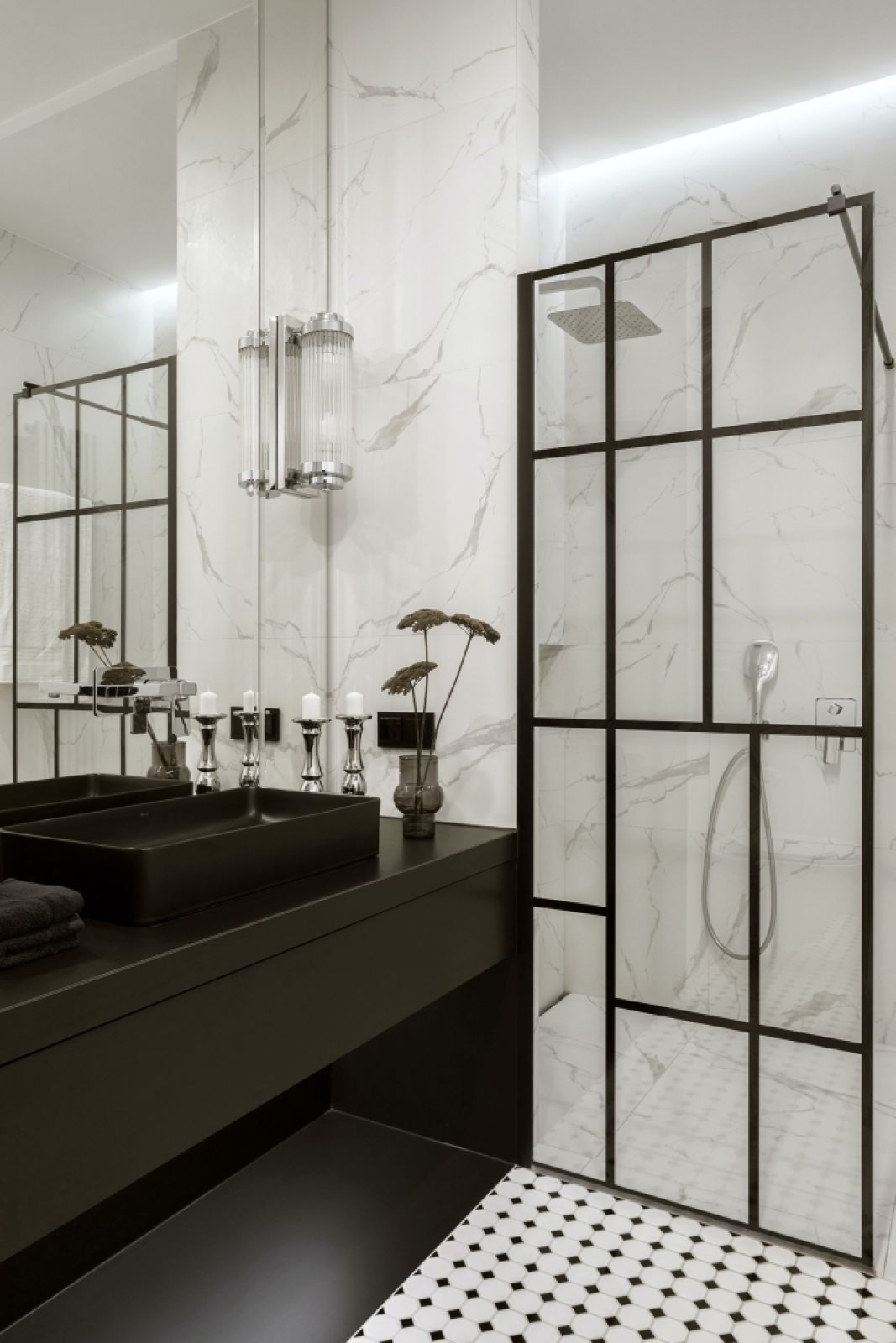 Na wstępie trudno było sobie to nawet wyobrazić. – Kiedy wkroczyliśmy, stały już deweloperskie ścianki działowe i cały układ był z naszego punktu widzenia bardzo niefunkcjonalny – spory salon z aneksem kuchennym poprzedzał olbrzymi korytarz, czyli zmarnowane metry kwadratowe… – wspomina Jonatan. – Żeby sprostać wymaganiom właściciela co do układu, wykonaliśmy bardzo wiele rysunków. Ale udało się. Dziś w miejscu aneksu kuchennego jest salon, a kuchnia – wzdłuż jednej ze ścian korytarza.