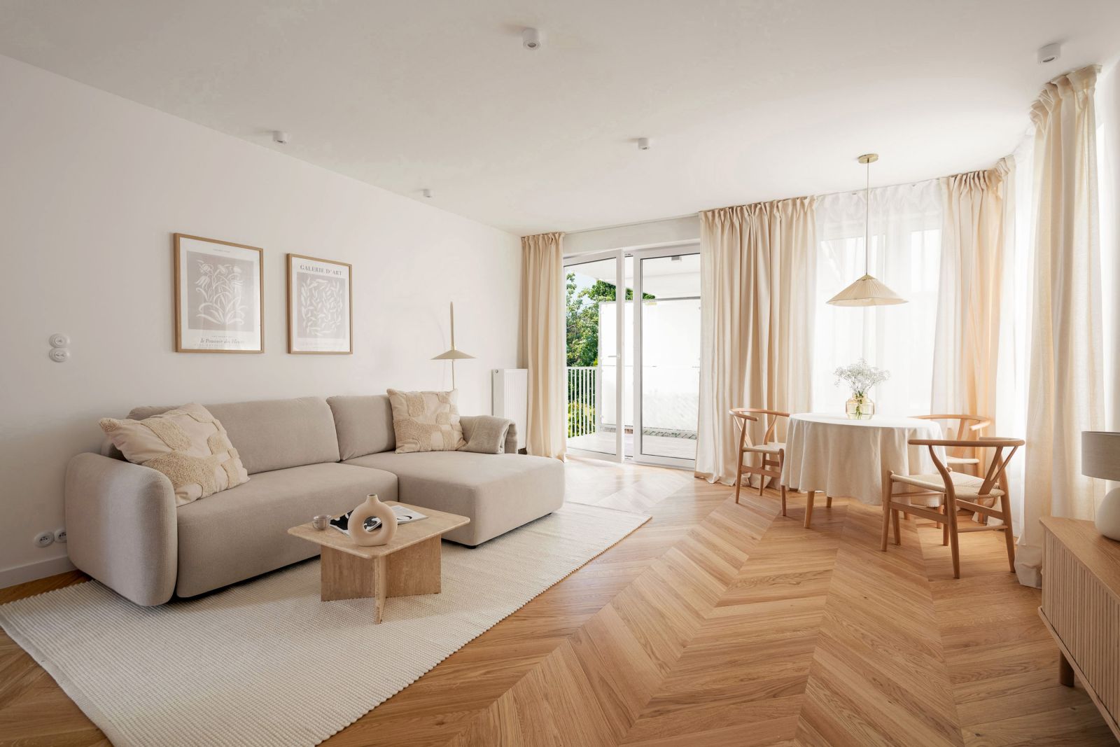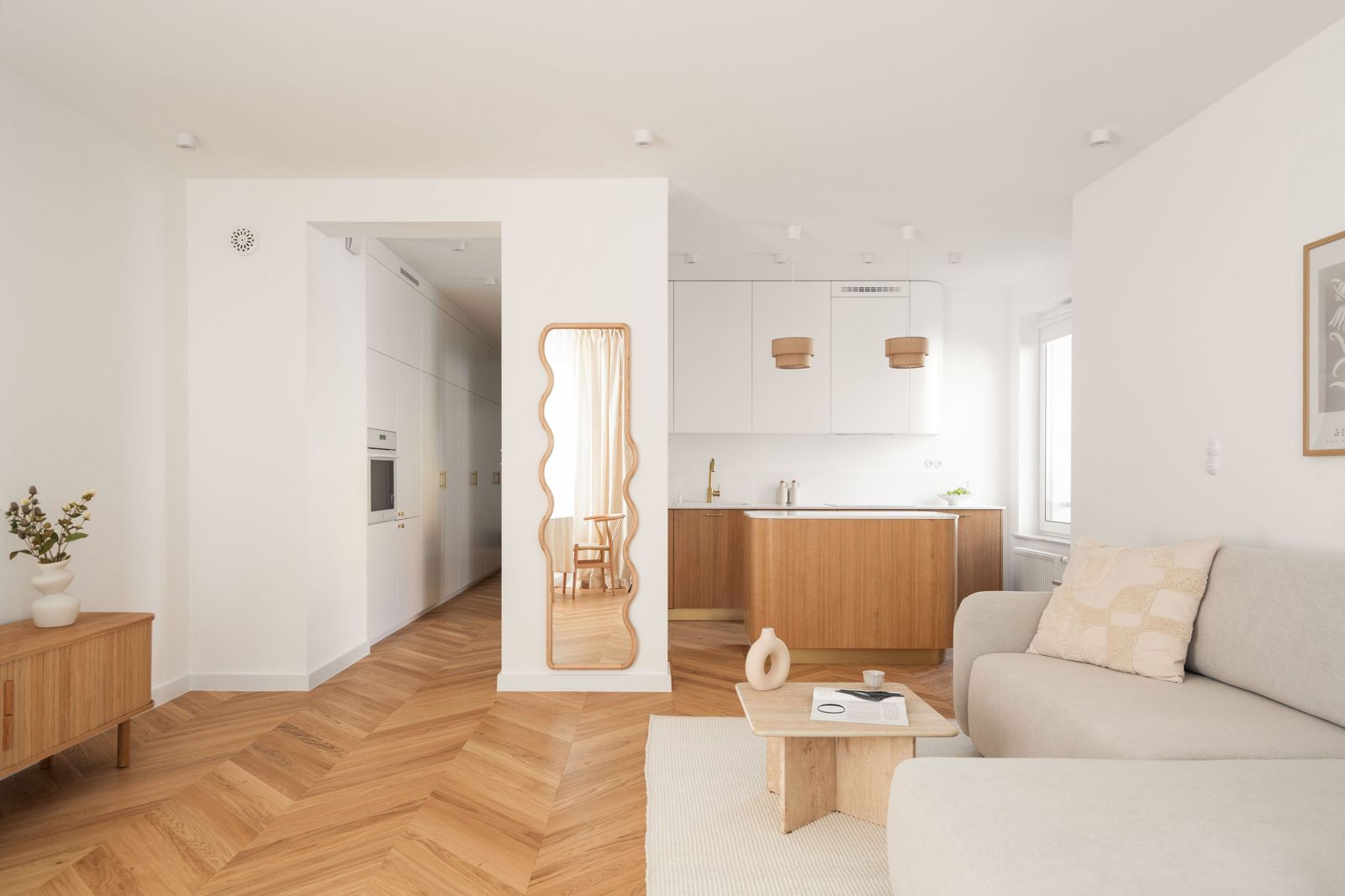 Ciepłe i przytulne mieszkanie w odcieniach beżów – oaza spokoju w zielonej części Warszawy