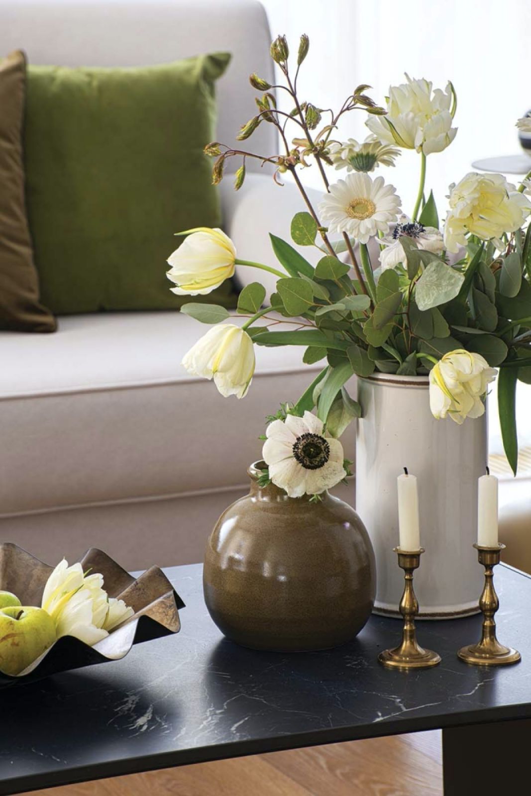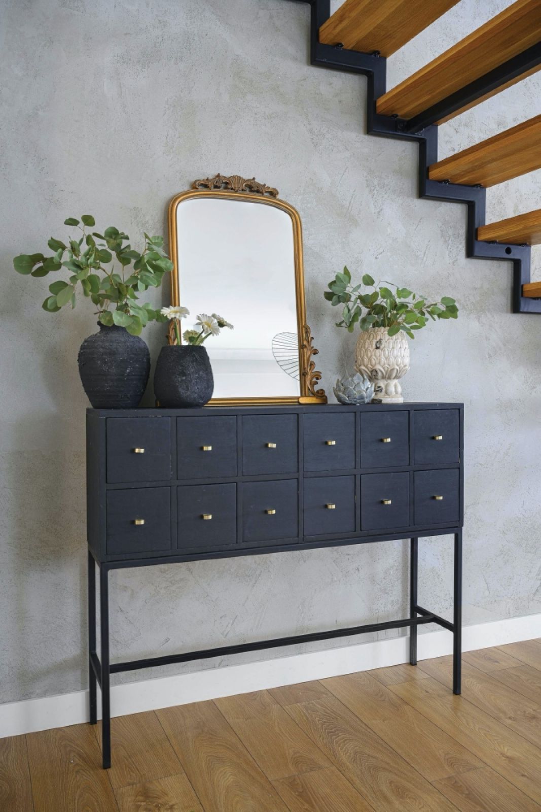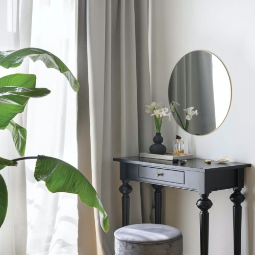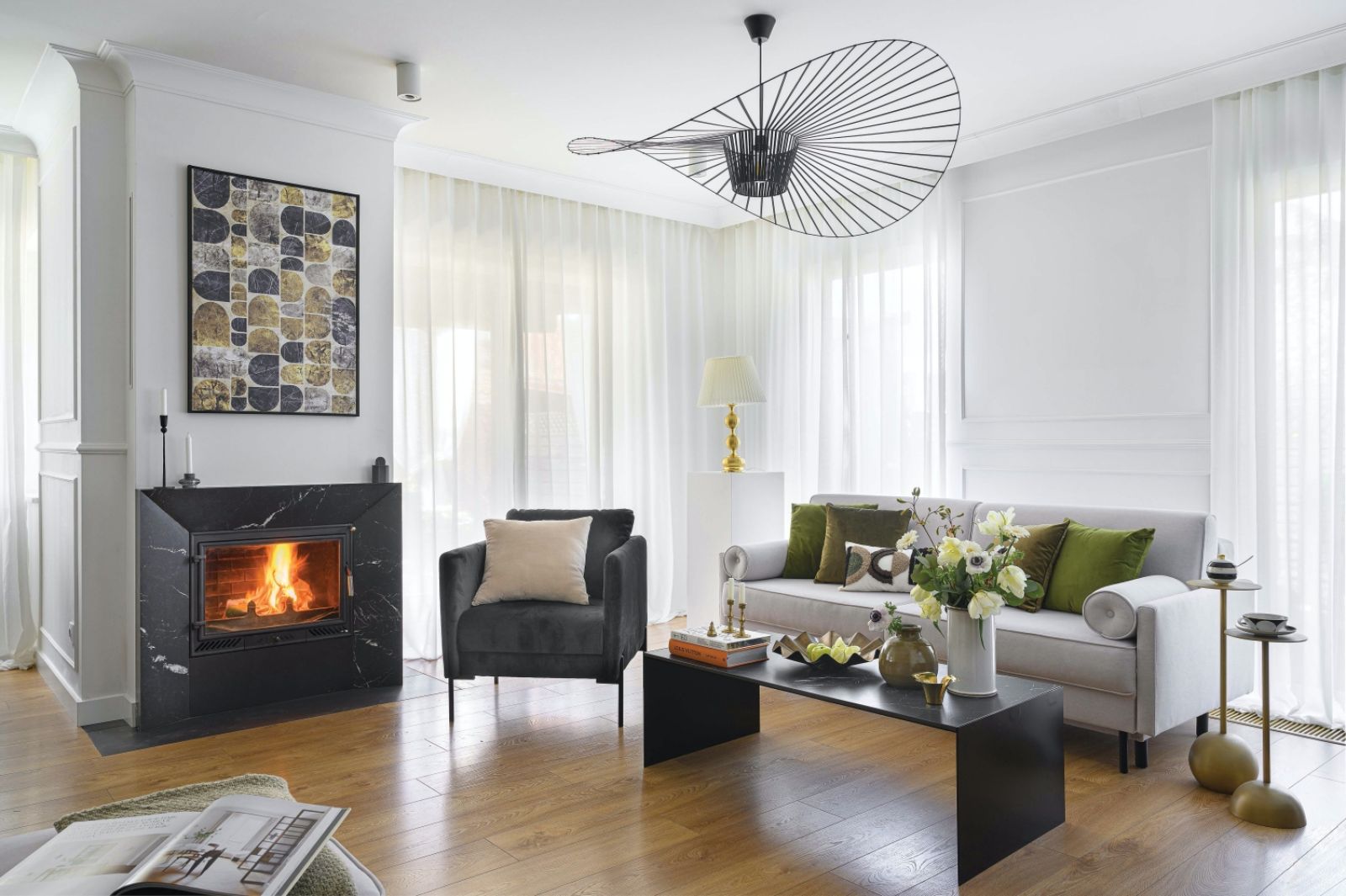 Dużą część mebli i elementów wystroju Daria zaprojektowała sama. Wymyśliła kominek, stolik kawowy, półkę kuchenną, ale też łóżeczko dziecięce czy zdobne poduszki. Lubi mieszać stare z nowym, łączyć design i vintage, więc w domu pojawia się wyszperany w stodole ze starociami wazon czy mosiężna lampa, która otrzymała nowoczesny klosz. Na dodatek w wolnym czasie zdarza się jej odnawiać stare meble. Przemiana męskiego, loftowego wnętrza w klasycznie eleganckie trwa już pięć lat. – Na szczęście zgadzamy się z mężem co do kierunku, w którym ten projekt zmierza – mówi właścicielka. – Jednego tylko nie wiem: czy nasz dom jest bardziej czarno-biały czy może biało-czarny – żartuje.