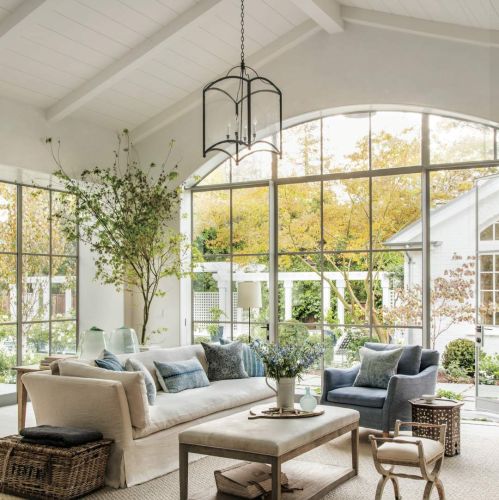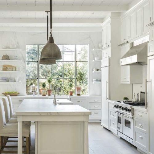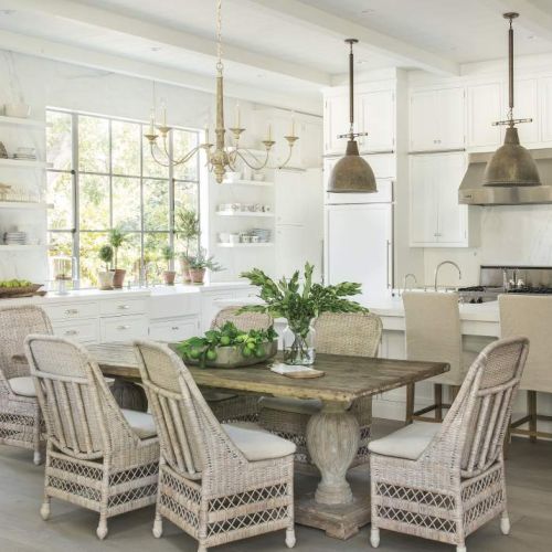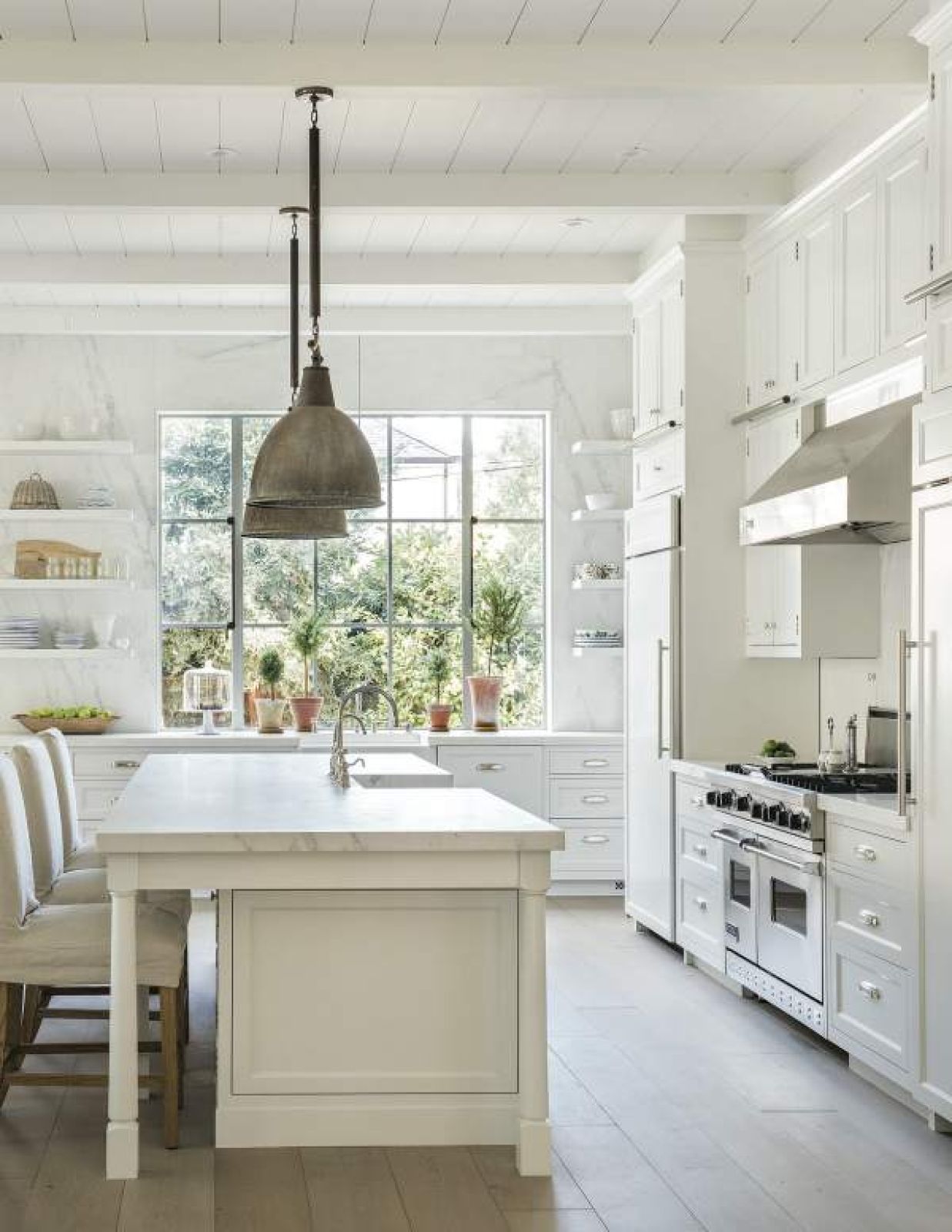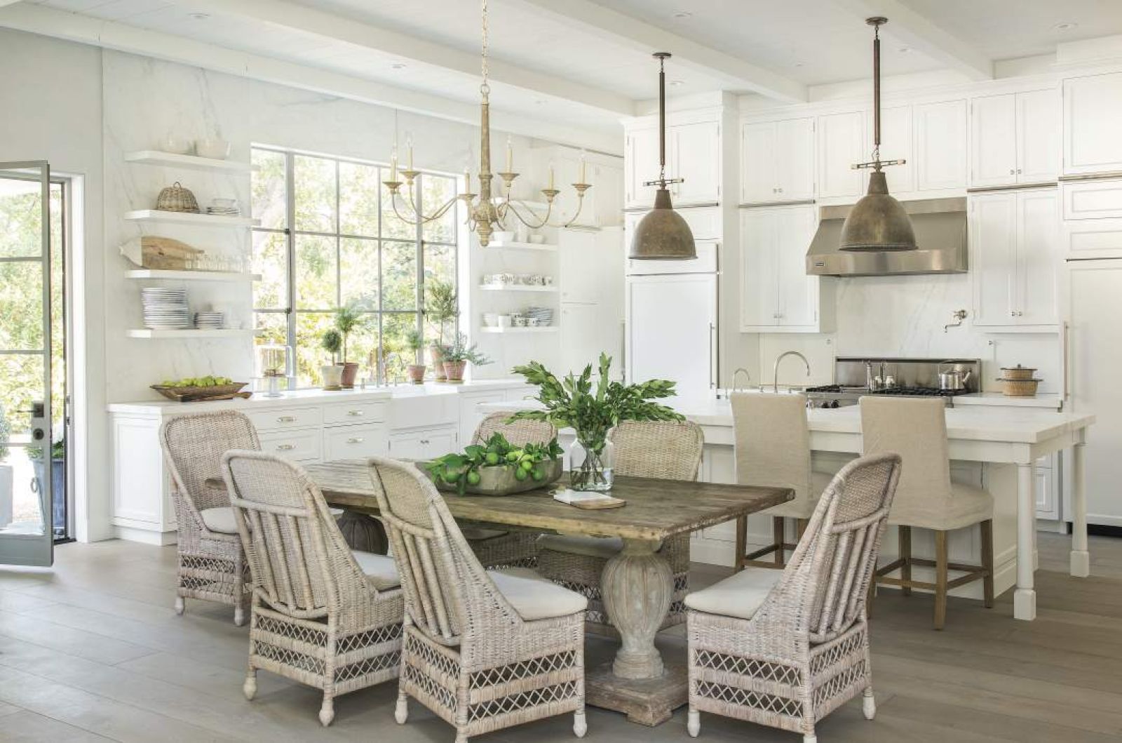 Tak wygląda ich autorska mieszanka tego, co stare i nowe. A pożyczone? Lampy kuchenne. Kiedyś oświetlały kort tenisowy Elizabeth Taylor. Właścicielka domu uwielbia aktorkę.