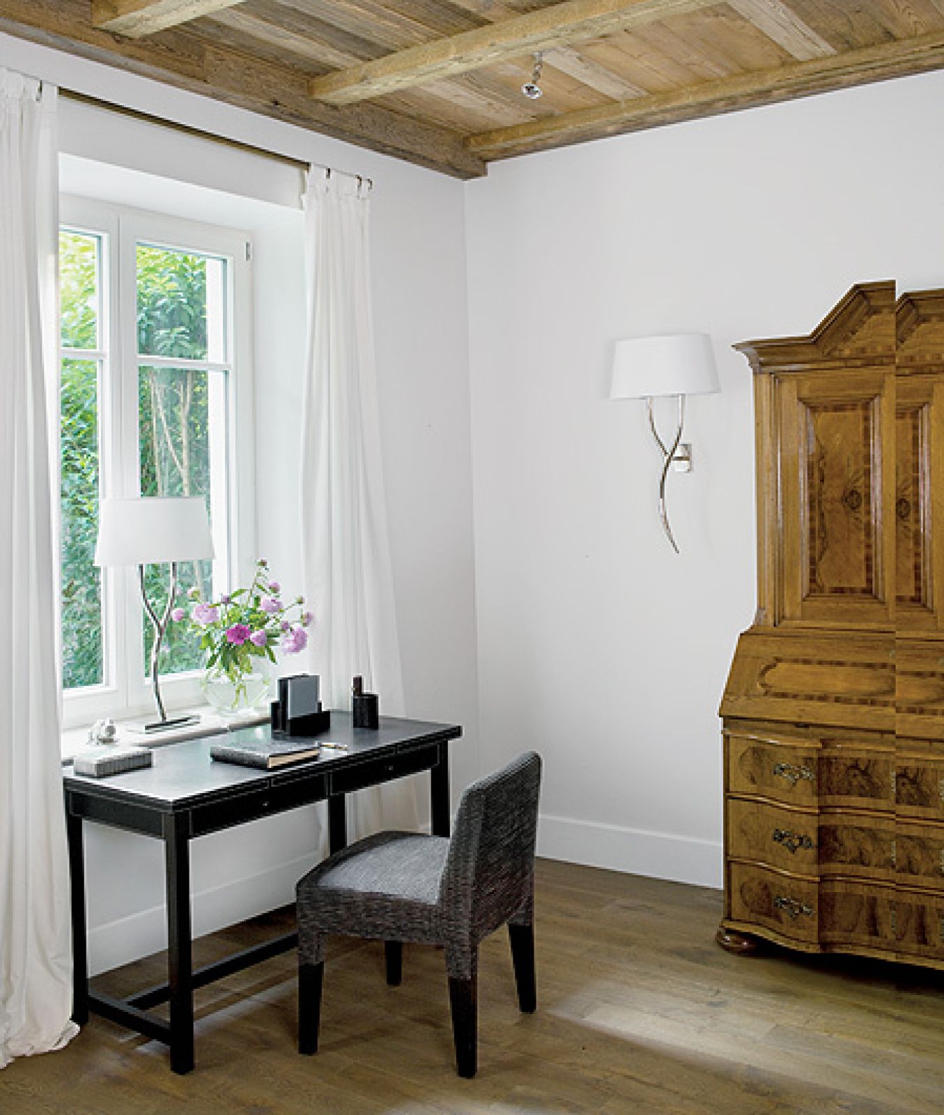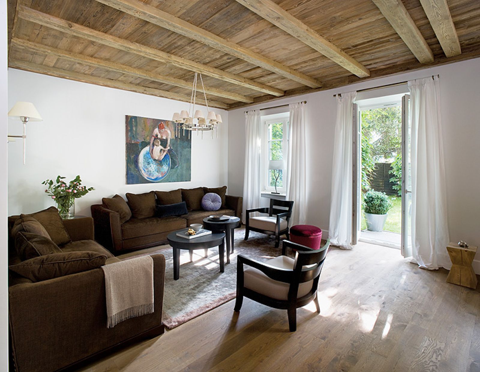 Saska to takie miasto w mieście, małe uliczki, sklepiki (cukiernia Irena z genialnym makowcem, ciastem drożdżowym oraz uroczymi właścicielami, mnóstwo restauracyjek przy Francuskiej). Choć domki są przeróżne, cała dzielnica jest pod ochroną konserwatora, więc poważny remont trzeba było konsultować w każdym szczególe. Właściwie zostały ściany i to nie wszystkie. Ewa myślała nawet o wymianie stropów. Jednak kiedy robotnicy ruszyli sufit, a na podłogę spadły tynk, glina i słoma, odsłoniły się drewniane belki. Wyglądały przepięknie, wystarczyło je przeczyścić szczotką i uzupełnić niewielki fragment w łazience. Oryginalne są też drzwi, zresztą widać, jak wysoko mają klamki. Ewa kazała tylko wstawić kryształowe szyby. Postanowiła też zostawić lastrikowe schody.