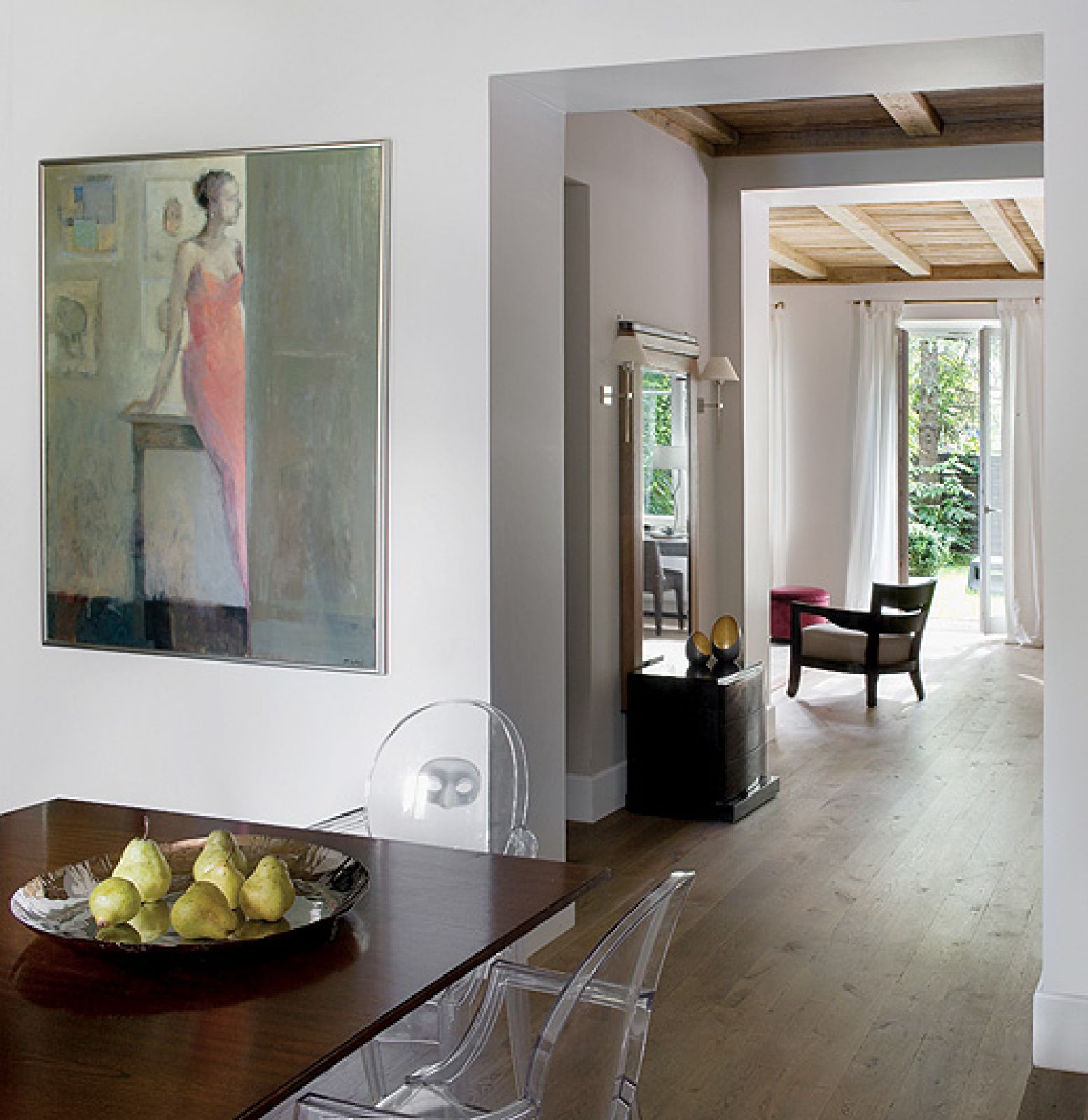 Kto tu mieszka? Ewa Ziębińska – właścicielka salonu Casa Mia, projektantka (właśnie wróciła z budowy u klientów), Michał Zaborowski – malarz (chwilowo nieobecny, dogląda remontu w swojej Galerii Karowa), Ania (jest w szkole), Helenka (w przedszkolu). Ewa: – Wychowałam się na Saskiej Kępie, gdzie mieszkali moi dziadkowie, a potem mama. Los rzucił mnie na Mokotów. Kiedy urodziła się Helenka, pomyślałam o nowym domu.