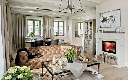 Na styl domu wpływ mieli także ukochani mężczyźni: mąż i trzej synowie. – Wnętrze nie mogło być takie kobieco-francuskie. To nie wchodziło w grę! Sadzać czterech facetów na białej sofie? – śmieje się. Postawiła więc również na praktyczne rozwiązania. Wybrała solidną dębową podłogę firmy Chapel Parket, a do salonu wstawiła brązową kanapę z pikowanej skóry firmy Almi Décor. Muszą być nie do zdarcia.