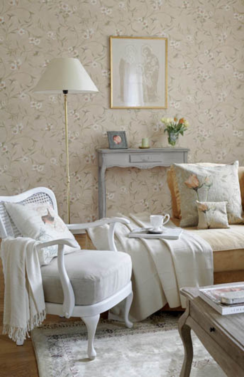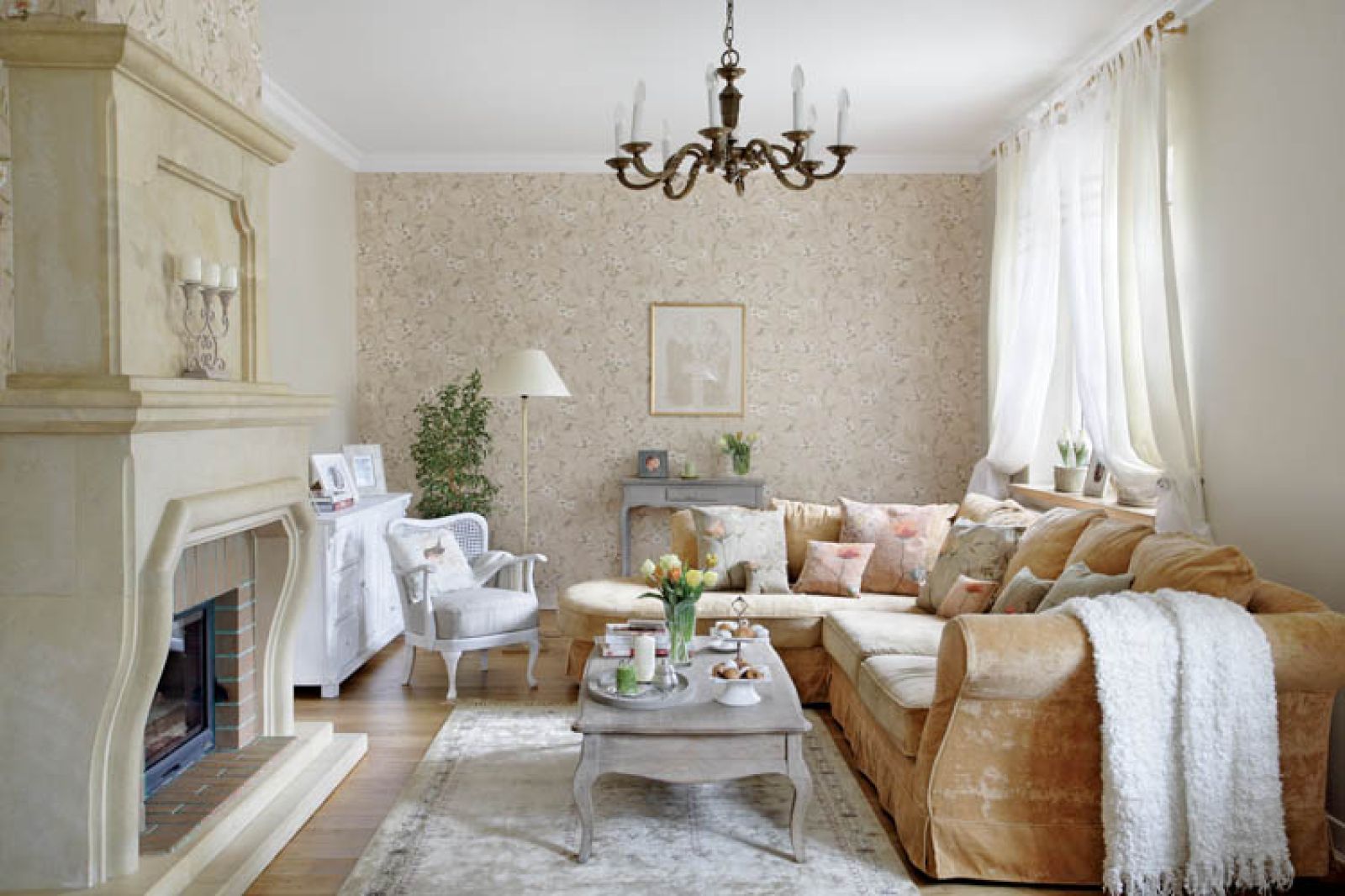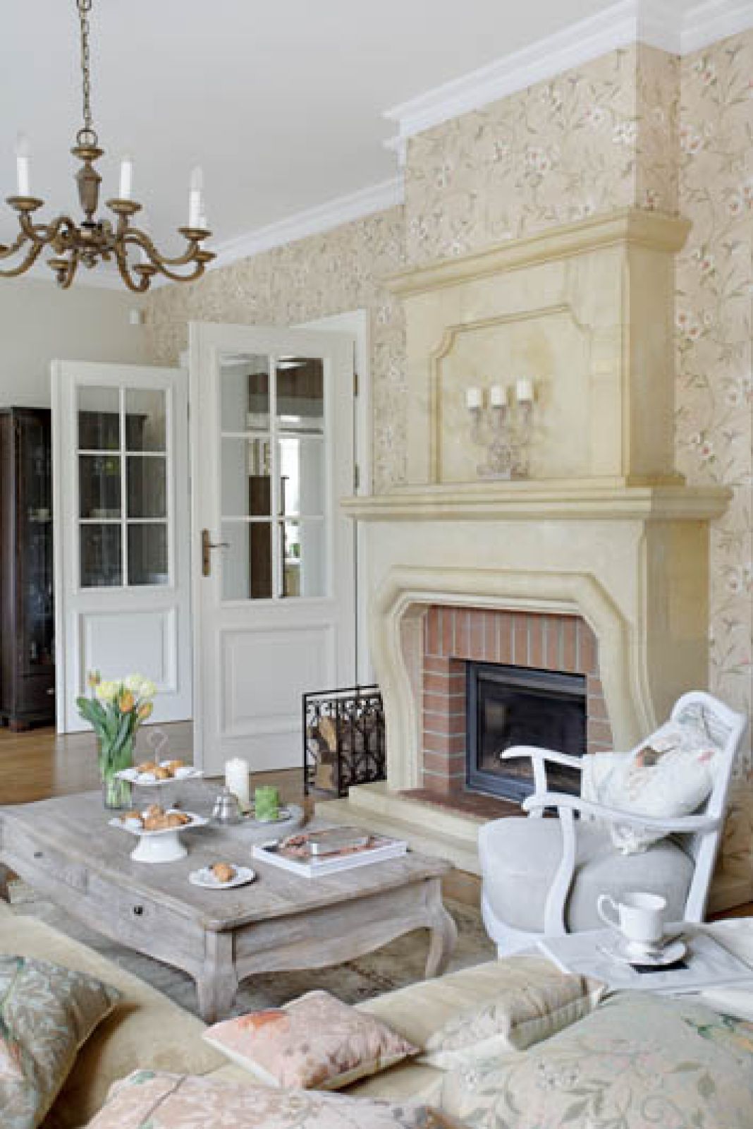 Dołączyły do niego rustykalne meble z Mode De Vie, kanapa obita miodowym welurem (Mebelplast), gobelinowe poduszki ze sklepu Romantica i dodatki z Galerii Lawenda w Kazimierzu Dolnym.