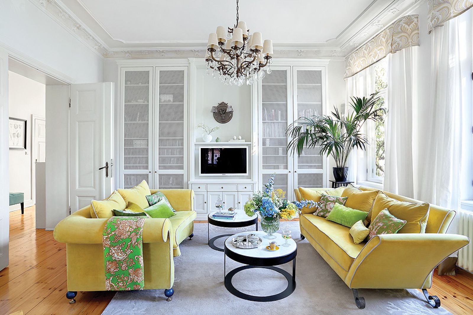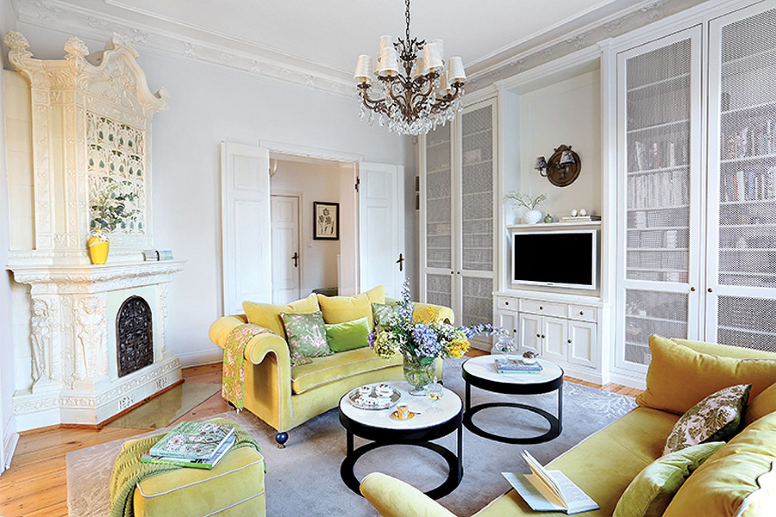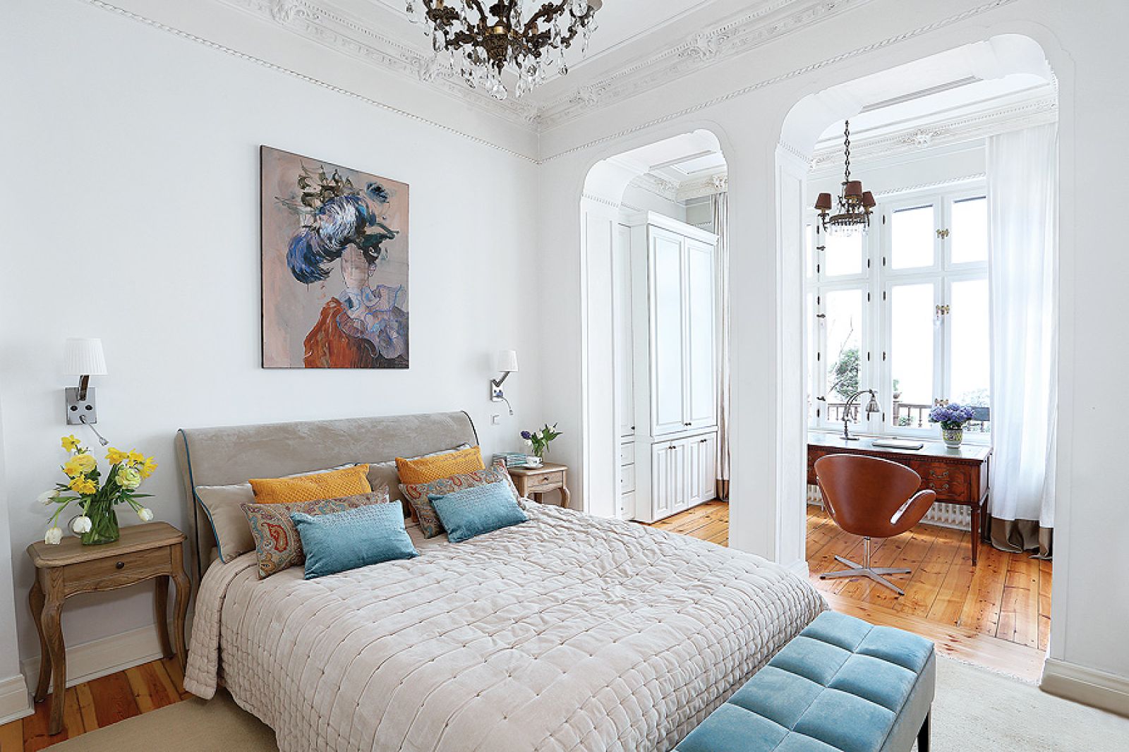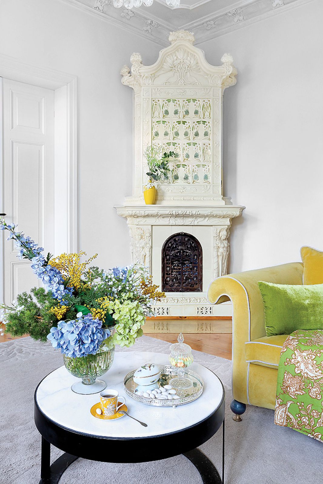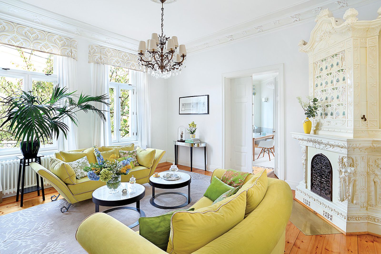 Mieszkanie w sopockiej kamienicy jest zawsze gotowe na powitanie wiosny: jasne, wysokie, pełne ciepłych kolorów.