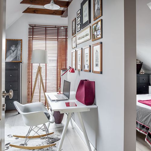 Joanna kolekcjonuje meble zaprojektowane przez Eamesów. Zaczęła od krzeseł w kuchni, potem był bujak do sypialni. Zachodu wymagało zdobycie słynnego Lounge Chair. Długo pilnowała aukcji na niemieckich stronach. Wreszcie trafiła na używany mebel w dobrym stanie (nowy kosztuje fortunę). Jego właściciel akurat wybierał się do Warszawy, więc przywiózł do wglądu podnóżek. Fotel idealny nie był, ale Joanna jest zadowolona.