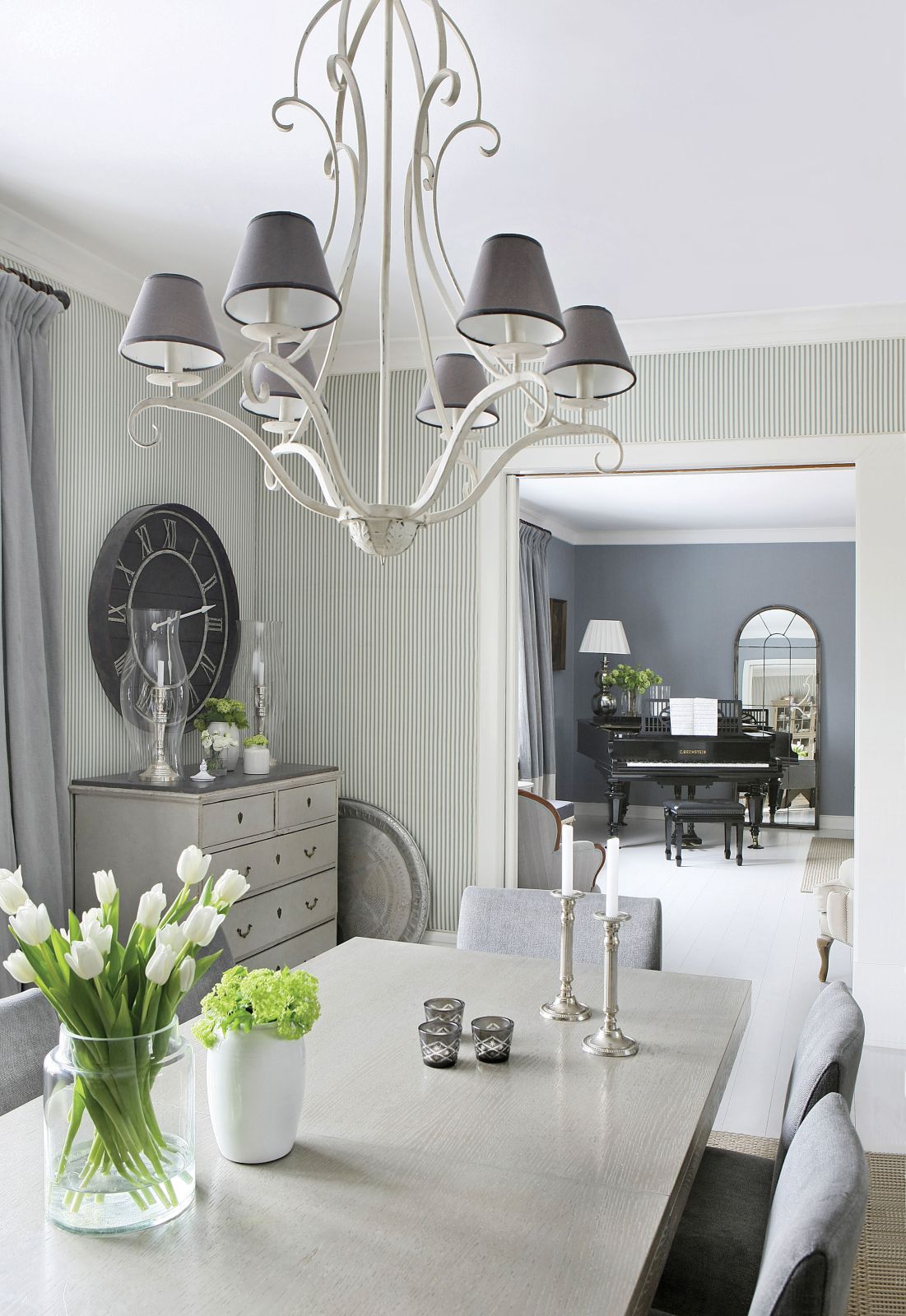 Wreszcie zajęła się meblowaniem. Nie trzymała się do końca stylu skandynawskiego, raczej szukała harmonii w kolejnych pomieszczeniach i miejsca dla swoich ulubionych mebli. Stary stolik, kupiony kiedyś na wyprzedaży na plebanii, idealnie pasował jej do holu. Rzeźbione, klasycyzujące krzesło z rodzinnego domu po przemalowaniu na biało stanęło w jadalni, a fortepian Bechsteina zajął róg salonu – Maria jest zupełnie niezłą pianistką, ćwiczą także dzieci.