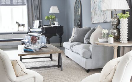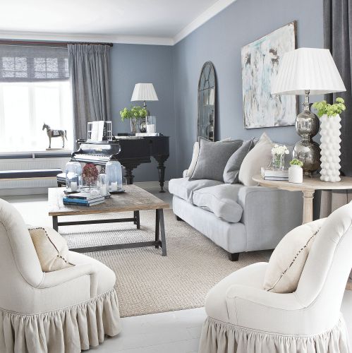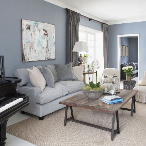 Wnętrza w szarości i błękitach