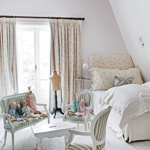 Inny jest tylko pokój dziecięcy należący do córki. Mała za nic nie chciała u siebie błękitu. Sama wybrała tkaninę w różyczki na zasłony i łóżko, a ludwikowskie mebelki, których Maria używała jako dziecko, kazała obić w paski. Zamarzyła też o manekinie, jak w pokoju mamy.