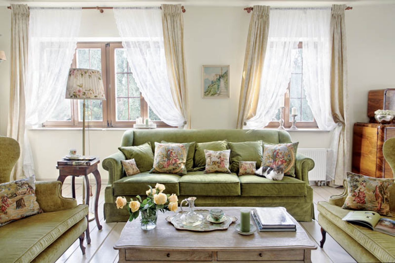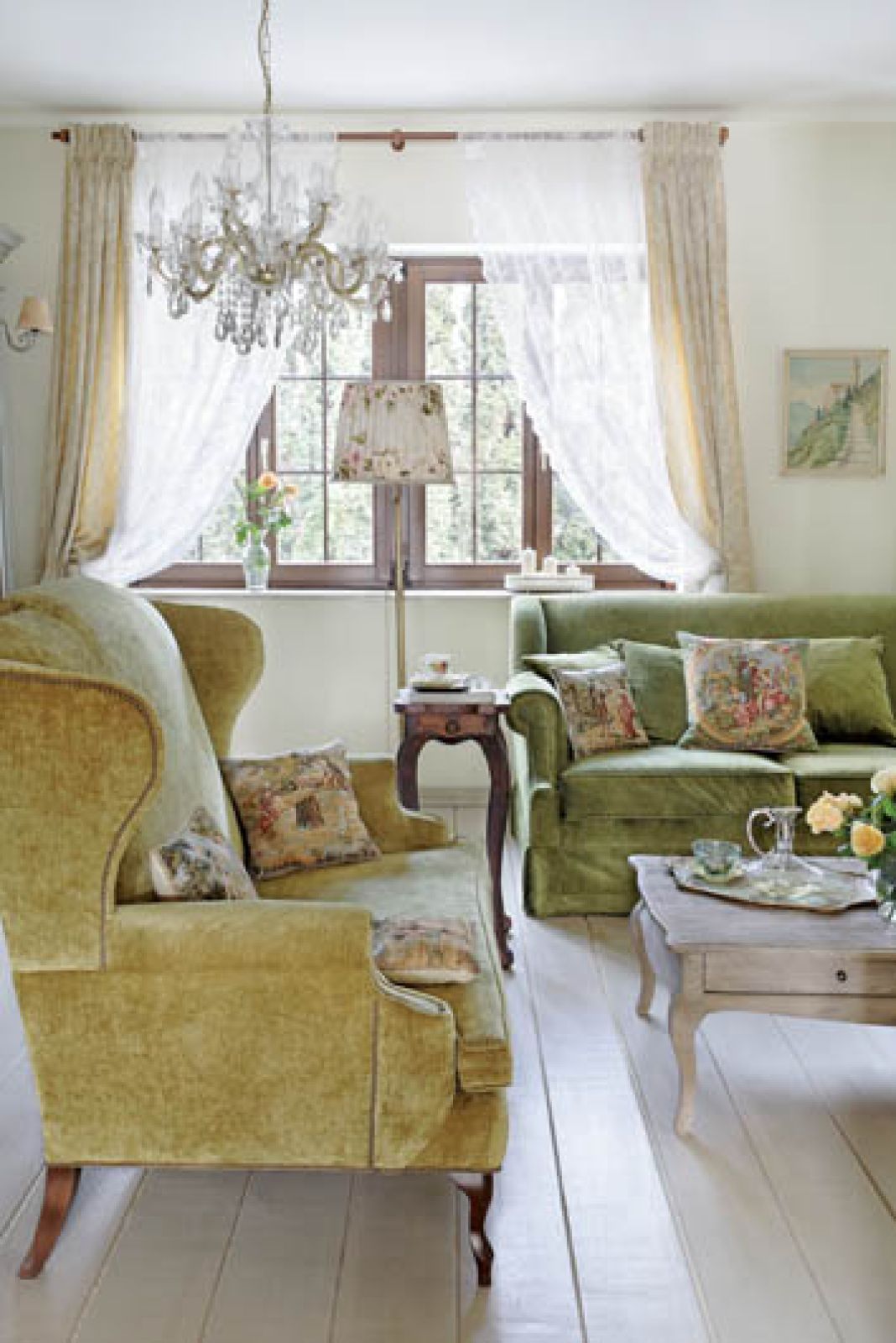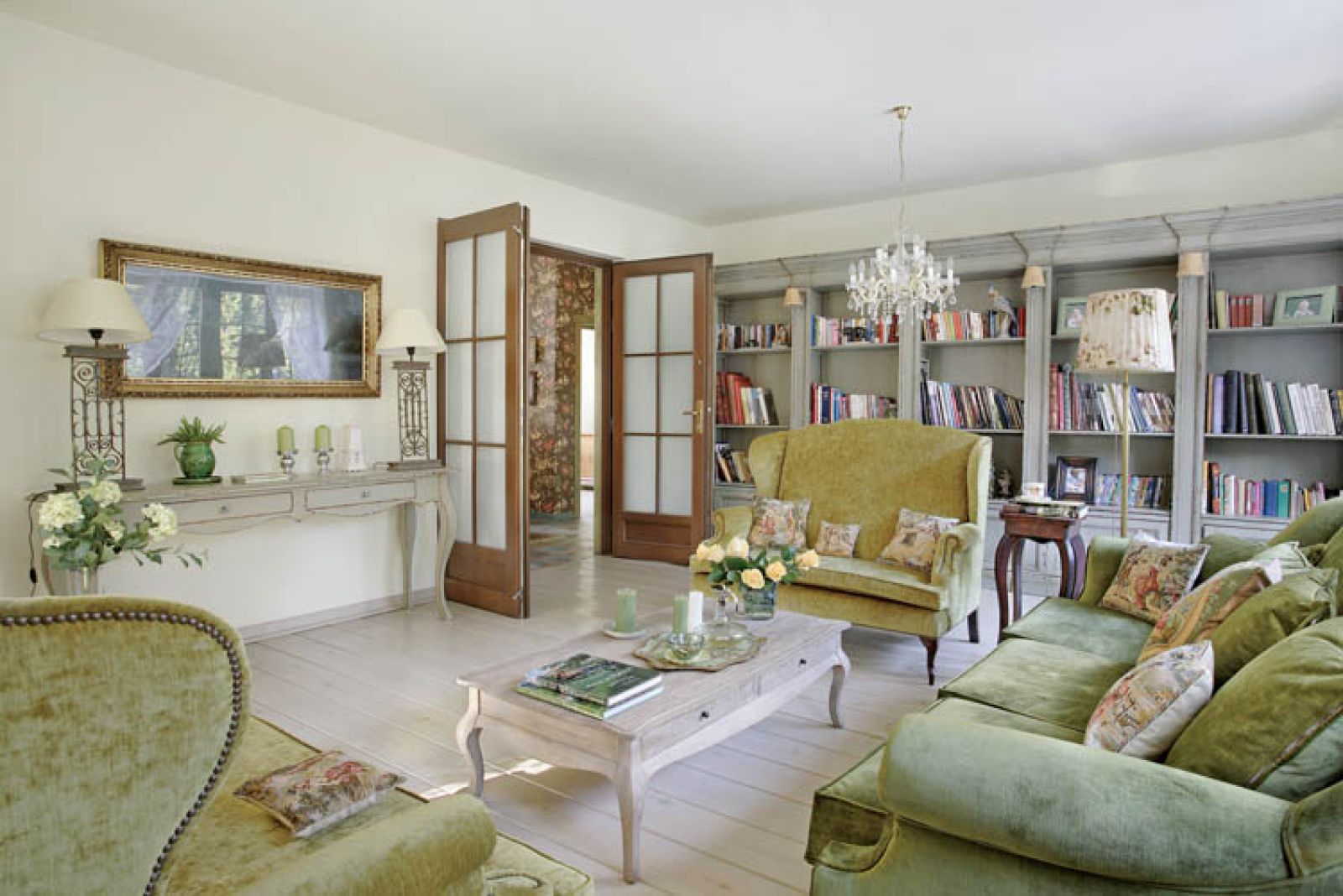 Meble – zielone kanapy i postarzaną bibliotekę – znalazła w Hiszpanii. Panowie z zaprzyjaźnionej firmy transportowej szczerze się nad nią litowali: – To już gorszych mebli ci Hiszpanie nie mieli? Takie odrapane…