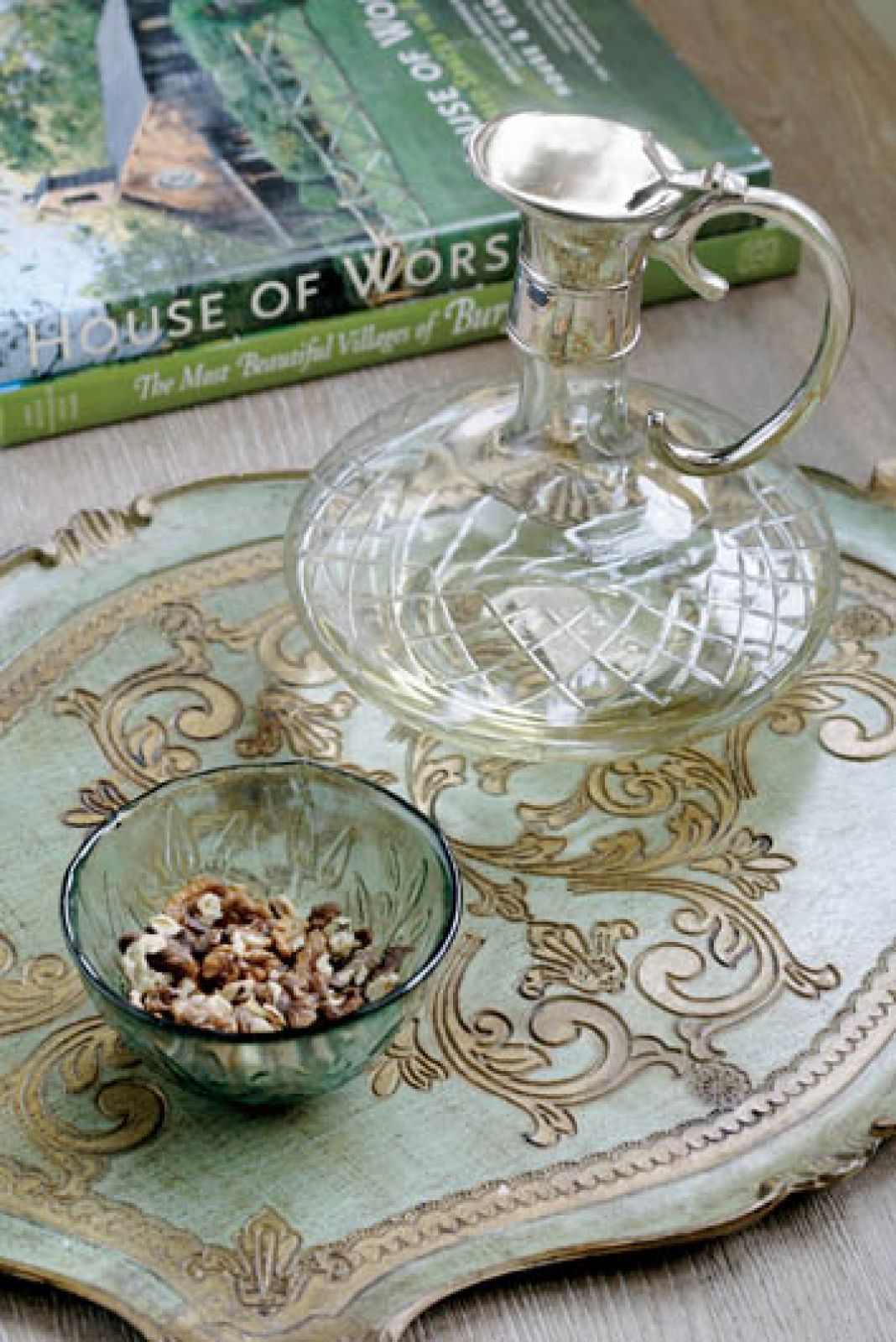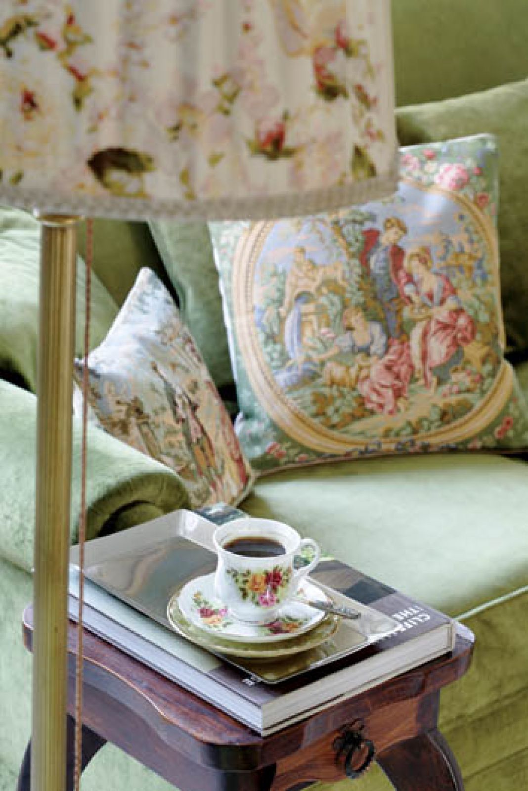 Kredens kupiła jako niespełna dwudziestolatka. Zbuntowana, z długimi czarnymi włosami i miniówce, podjechała do zakładu renowacji mebli i zażyczyła sobie, żeby zedrzeć politurę i… pomalować go na zielono (pomachała panom przed nosem wzornikiem kolorów). Oniemiali pracownicy próbowali ratować świetnie zachowany mebel przed profanacją, jednak Agnieszka była nieugięta. Dziś szmaragdowy rzeźbiony kredens wygląda fantastycznie w kwiecistym holu.