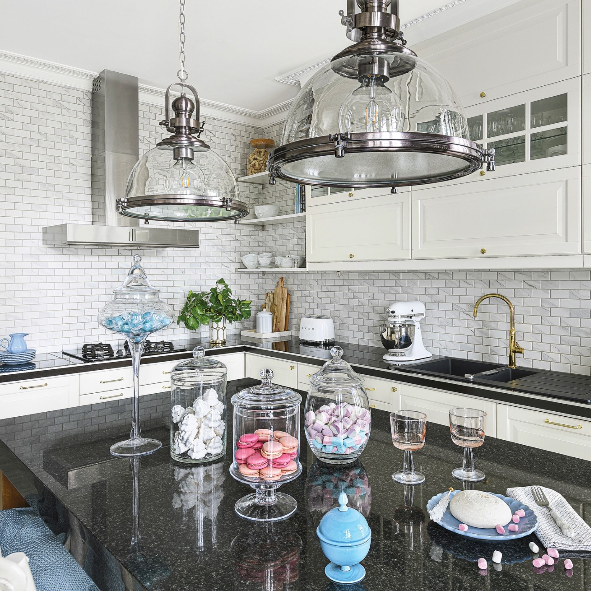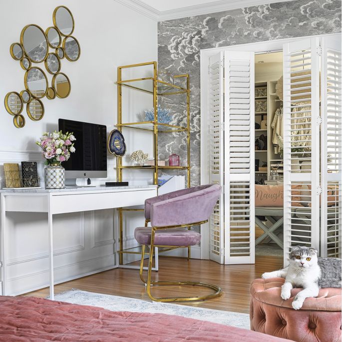 W kuchni okazało się, że trzeba zmienić lodówkę na większą, bo sześcioosobowa rodzina już nie pomieści wiktuałów w starej. To wymusiło przeróbkę zabudowy na jednej ze ścian. Poza tym doszły nowe akcenty – złota bateria i pasujące uchwyty szafek kuchennych zastąpiły poprzednie, chromowane. W półkoliście zakończonych oknach pojawiły się shuttersy. Są składane, więc mogę dowolnie regulować dostęp światła. Uwielbiam ten element we wnętrzu, dlatego wstawiłam je też pomiędzy naszą sypialnię i garderobę. Kiedy w tej ostatniej panuje lekki nieład, po prostu je zasłaniam.