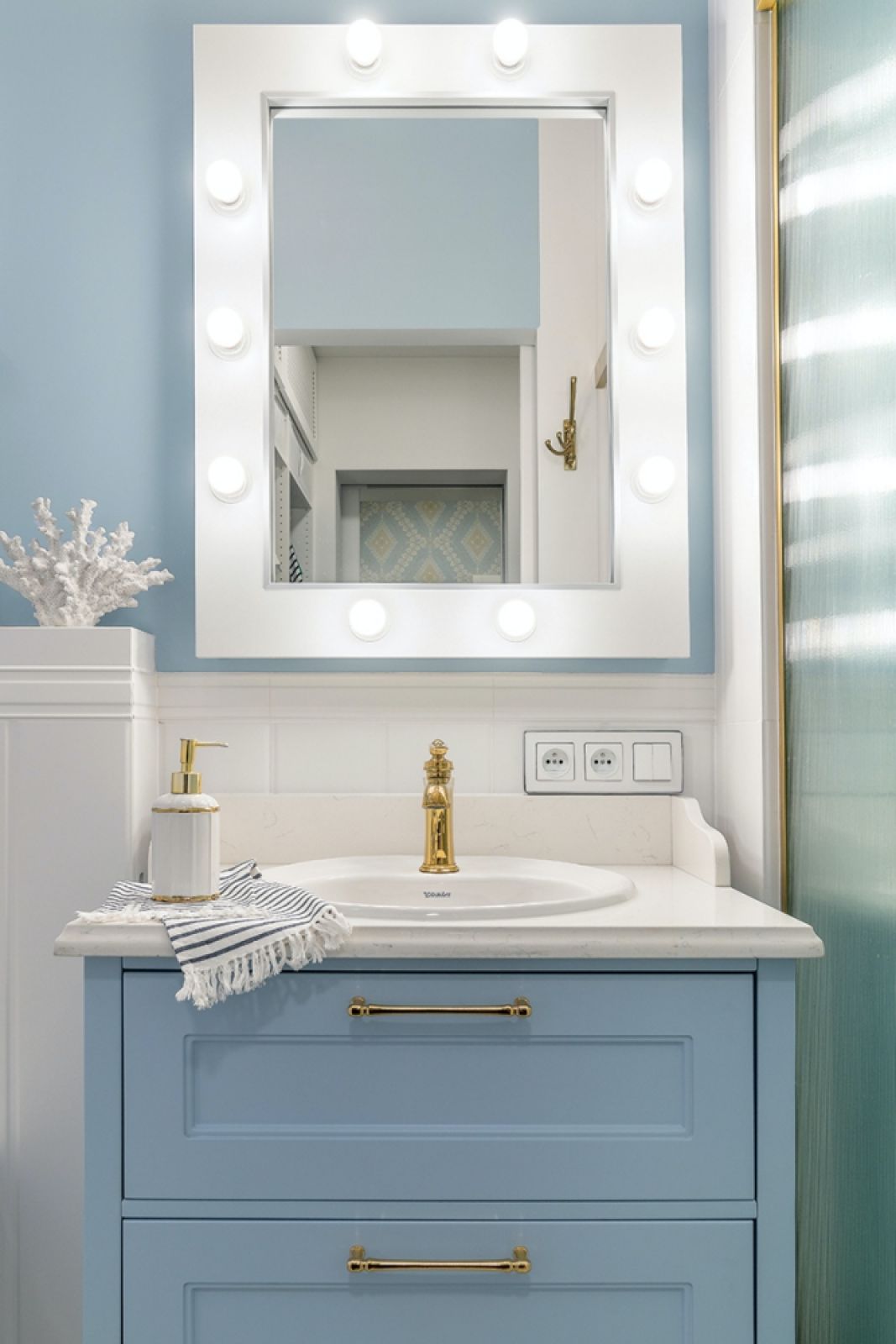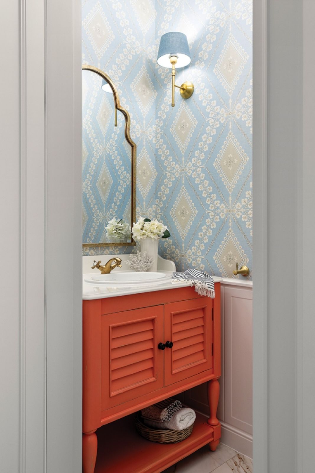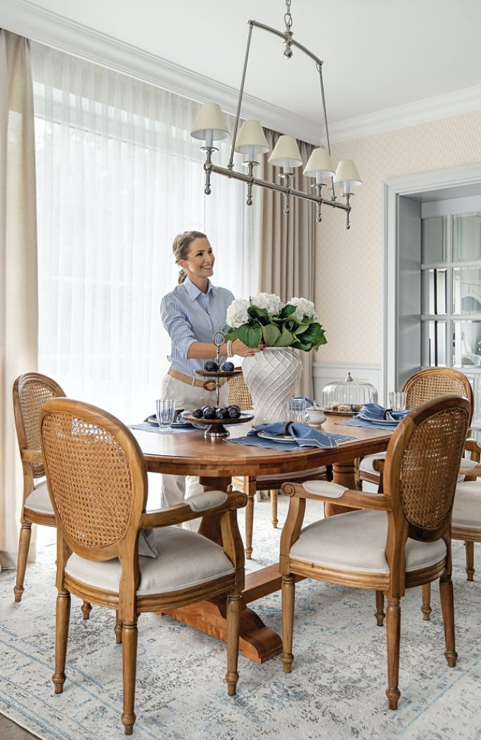 Najważniejsze było, żeby nie zrobić z wnętrza muzeum. Miało być pięknym i wygodnym miejscem do życia. Dom jest mniejszy od amerykańskich, ale klimat hamptons widać już od wejścia – w drzwiach właścicielka zamontowała amerykański pochwyt i goście mówią, że już od progu jest tu bardzo amerykańsko. Brak co prawda za oknem atlantyckiej plaży, ale Ola śmieje się, że zamiast tego może pójść na spacer nad Wisłę. A dookoła domu posadziła mnóstwo hortensji – uwielbia te kwiaty, a tak się akurat składa, że to także typowy dodatek wszelkich hamptonowych stylizacji.