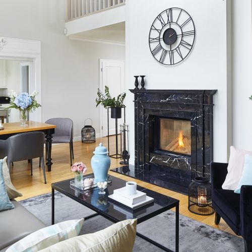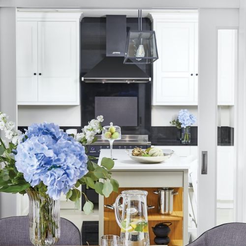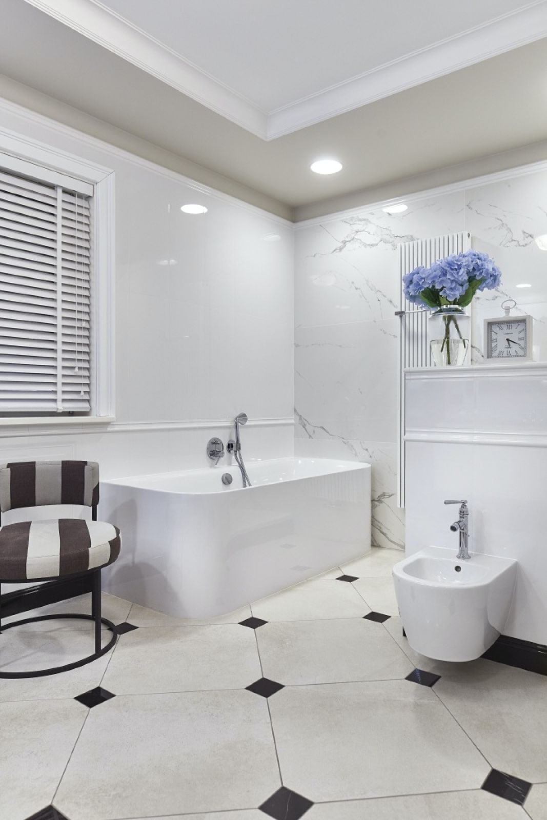 Elegancki i wygodny dom urządzony w stylu modern classic – królują w nim biel, czerń i błękitne dodatki