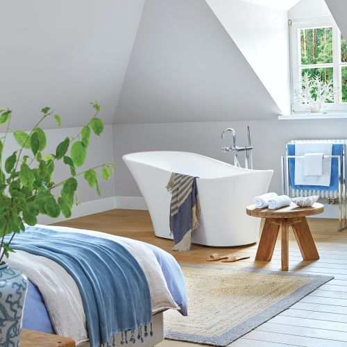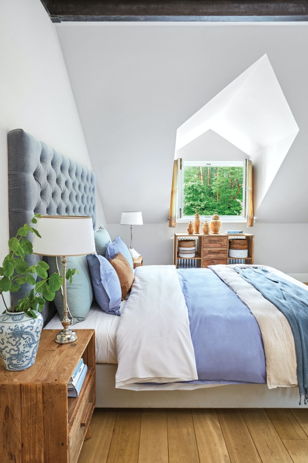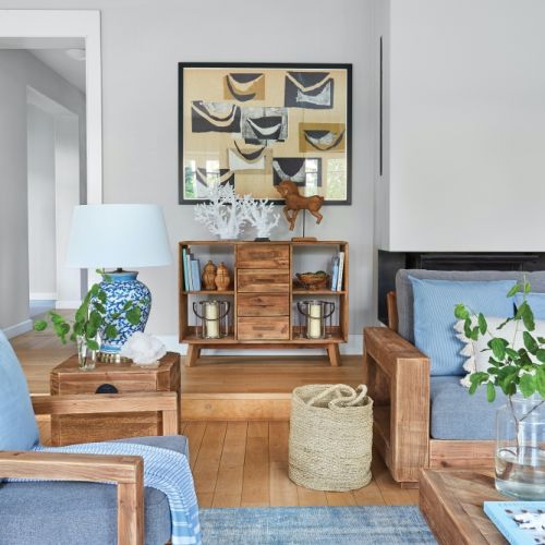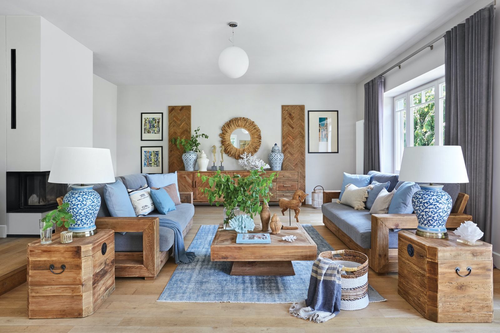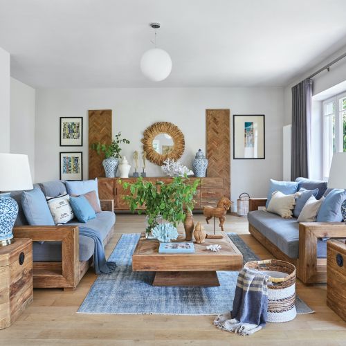 Piękne i przytulne wnętrza w drewnie i błękitach – elegancja stylu hamptons połączona z prostotą i natualnością stylu eko