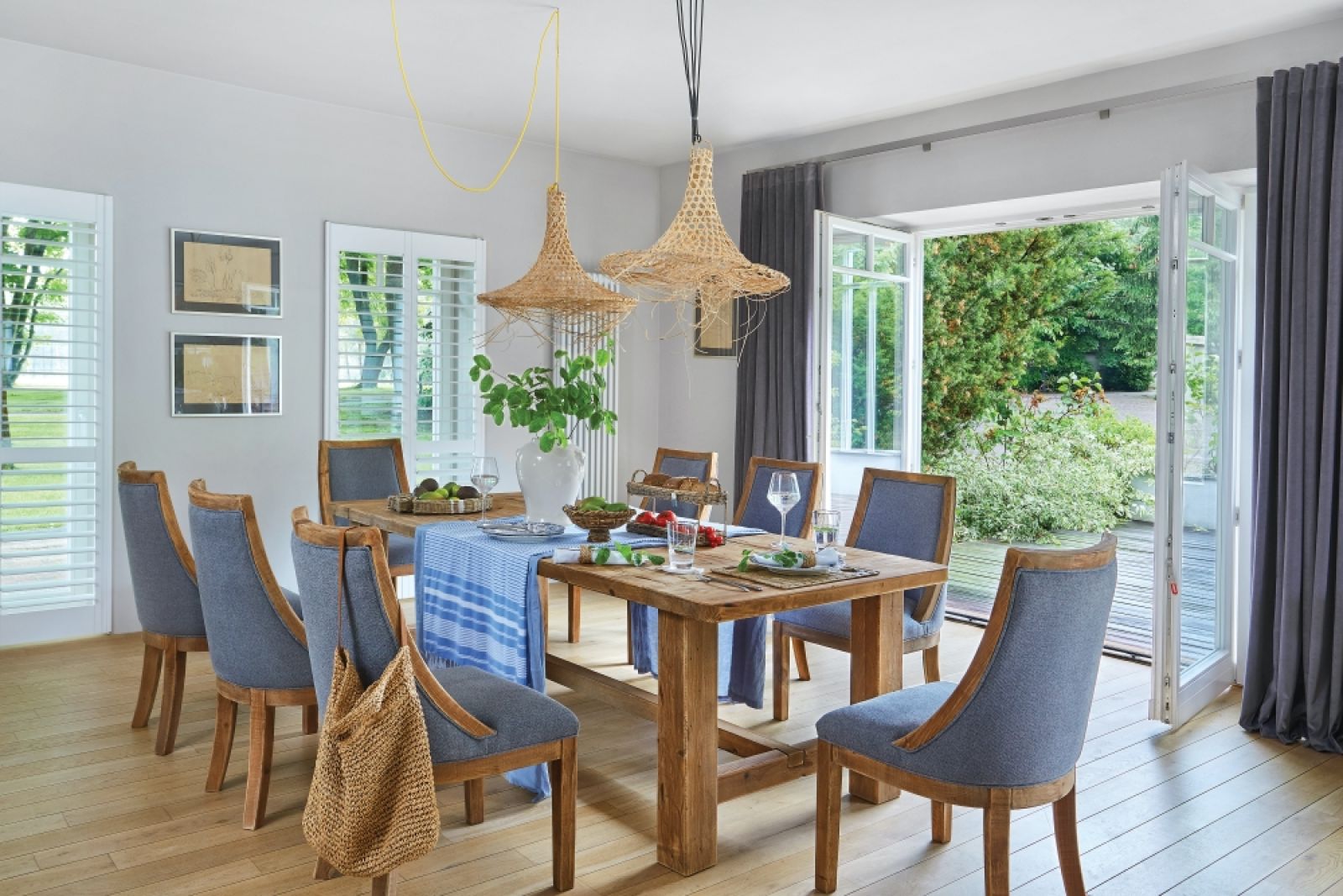 Właścicielka, choć głowę ma pełną pomysłów, otwarta jest też na nowe ciekawe inspiracje w kwestii urządzania wnętrz. Kiedy zjawiła się u niej stylistka współpracująca z „Werandą” Katarzyna Sawicka i zaproponowała sesję, przystała na jej wizję. Kasia, która wcześniej stylizowała wnętrza dworu z okazji Wielkanocy, tym razem stworzyła aranżację łączącą niezobowiązującą elegancję stylu hamptons i prostotę stylu eko.