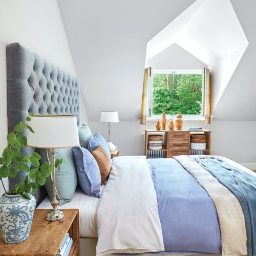 Stylowe i przytulneW tym domu elegancja idzie w parze z bezpretensjonalnością. Wystrój nawiązuje do widoków za oknami – na puszczę Zielonkę i dwa jeziora.