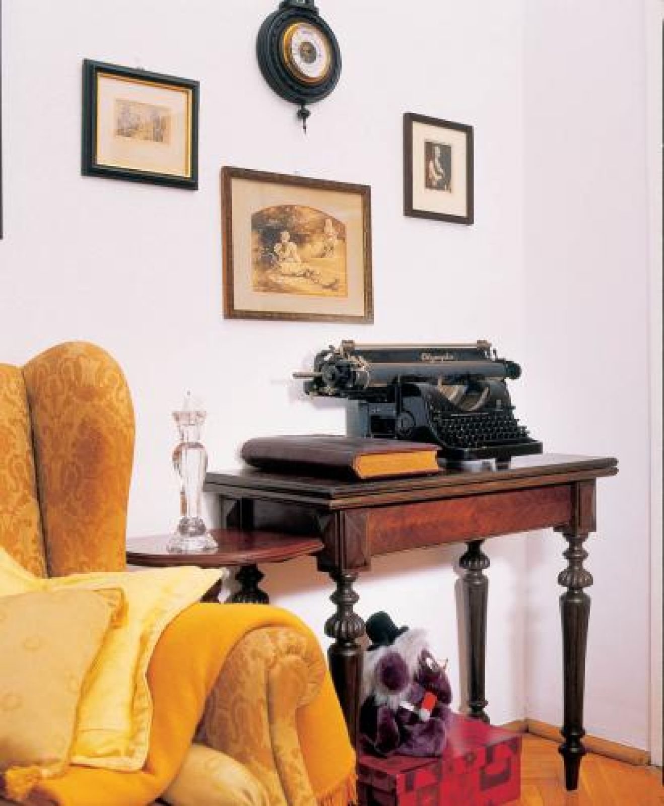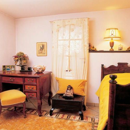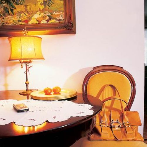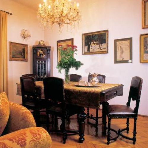 Z równą konsekwencją jak na zewnątrz pani Teresa urządziła dworek w środku. Ponieważ wychowała się w domu pełnym etażerek, serwantek, starych łóżek, szaf i słupków, tutaj też ich nie mogło zabraknąć. Z ciekawszych eksponatów, które udało jej się zdobyć na targach staroci, jest niciak i karciak. Ten pierwszy to mały, lekki stolik, z szufladkami, półkami i schowkami, w których damy przechowywały kiedyś przybory do szycia, a drugi – z blatem wyściełanym suknem – służył dawniej do karcianych rozrywek.