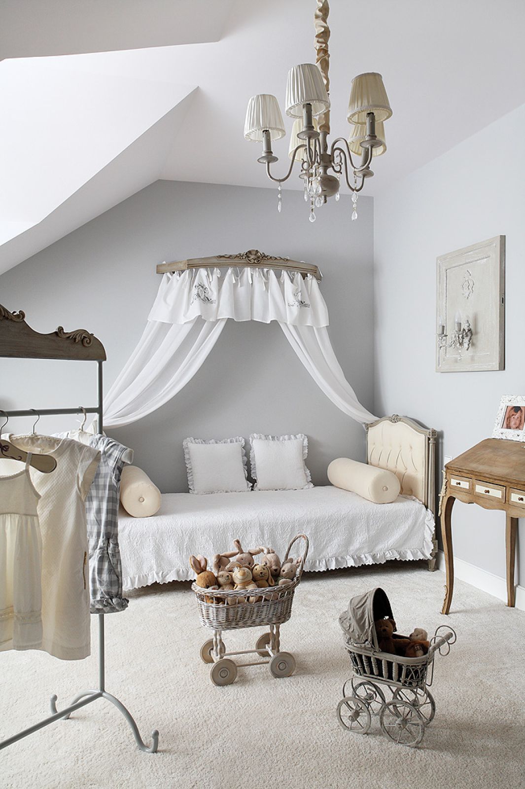 Od początku było wiadomo, że dom opanują złamane biele, beże i szarości. – Znajomi się śmieją, że moje dzieci nie znają kolorów, bo muszą chodzić w tych kremach i szarościach. Dostają kolorowe zabawki, ale ja i tak je wtykam do szaf i białych koszy. Synowi to na razie nie przeszkadza. Córka czasem tylko westchnie z rezygnacją: „Znowu szare…”.
