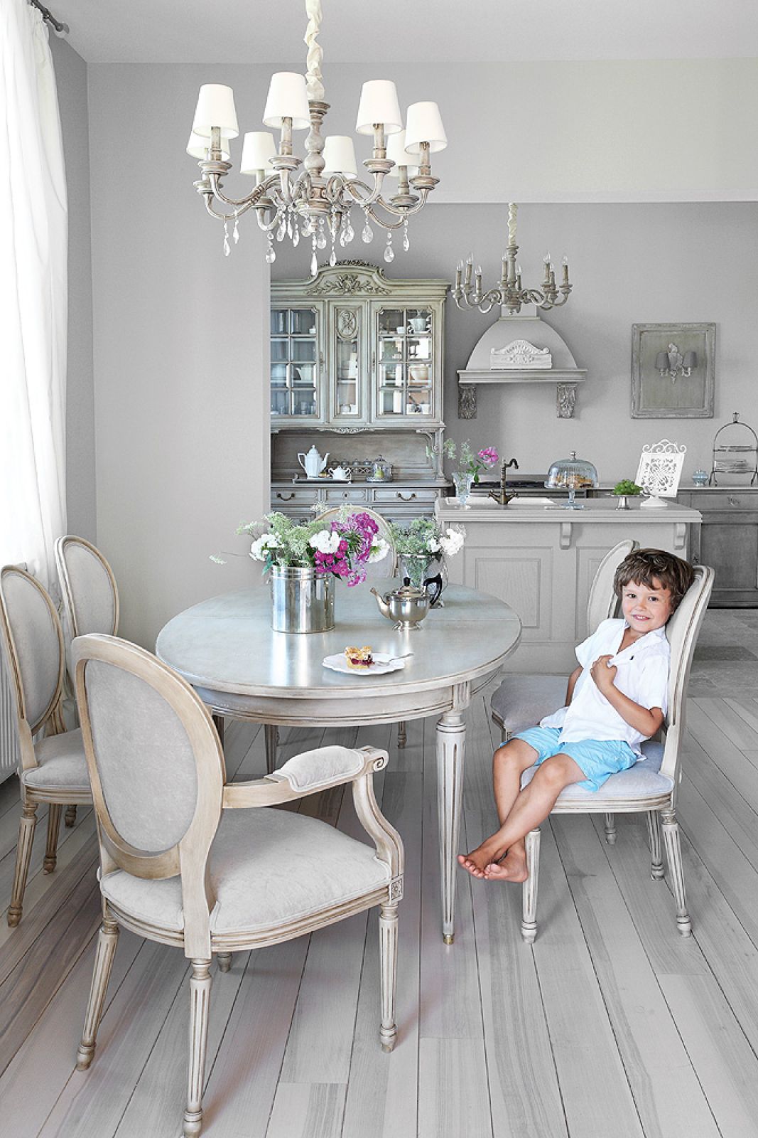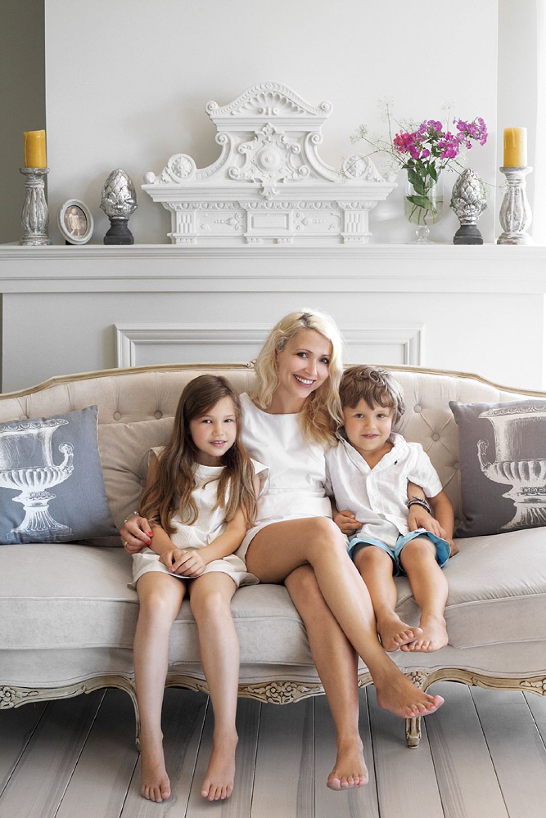 Gdy kupili dom, było oczywiste, kto go urządzi. Monika zatrzymała swoje życie – na ile można je zatrzymać, stale zajmując się dwójką małych dzieci i pracując na pełen etat – i oddała się tworzeniu wnętrz. Wszystko kupiła przez internet. – Miałam szczęście, nawet jeśli przeliczyłam się z wymiarami, chybione zakupy udawało mi się przerobić na coś odpowiedniego – tłumaczy. – No i jest jeszcze cudowny tata, który potrafi zrobić wszystko. Choć jako tradycjonalista nie palił się do tego, żeby porządne meble „niszczyć” i zamieniać we francuskie wymyślne cacuszka. Mama pomagała z tkaninami i tapicerką – opowiada Monika.