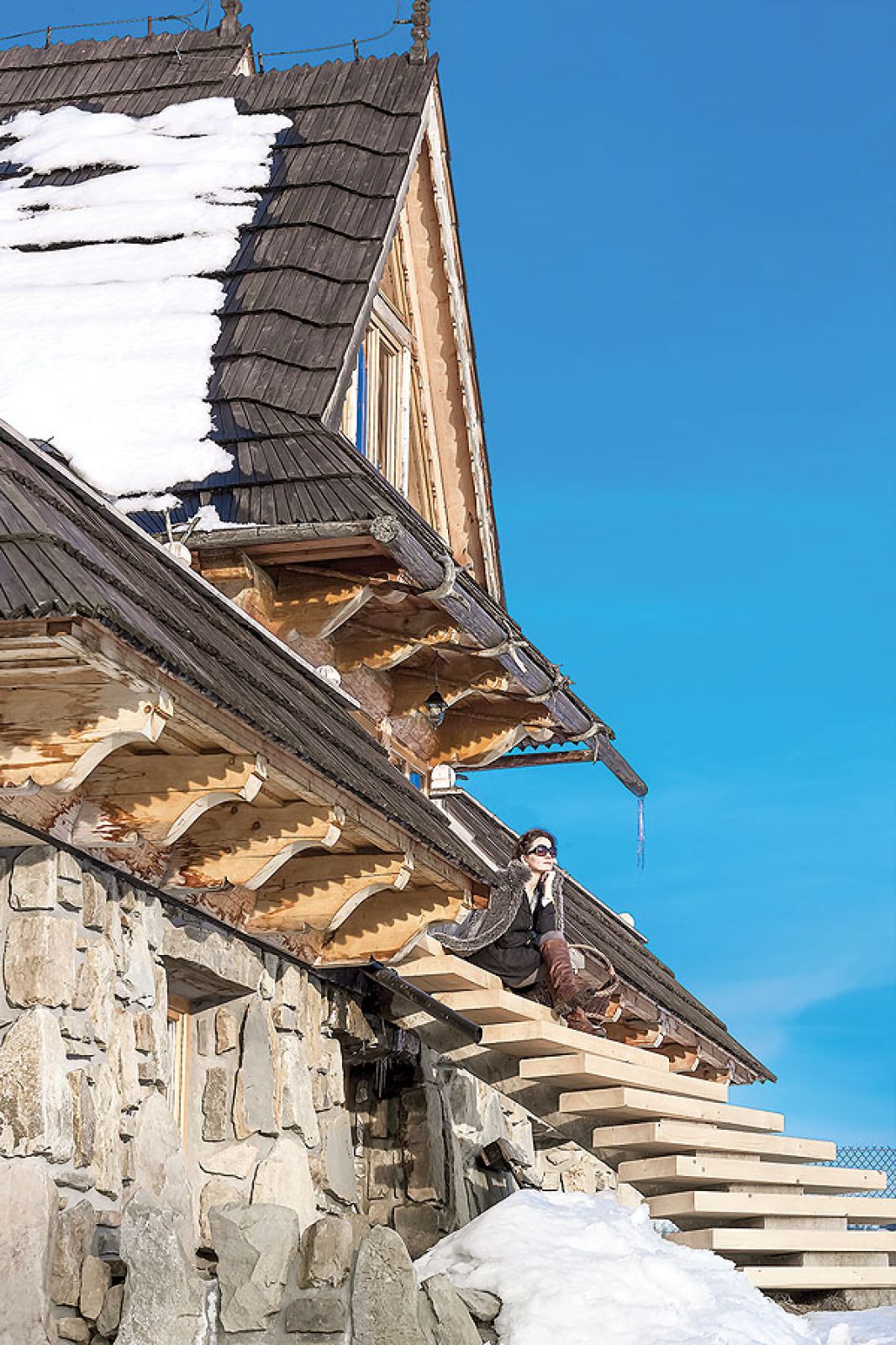 Po studiach planów było wiele, ale postanowiła wrócić na Podhale i zrealizować choć kawałek swojego marzenia. Zaprojektowała swoją Górską Osadę. U stóp Galicowej Grapy, na rozjeździe dróg do Murzasichla i Małego Cichego, buduje kolejne drewniane domy. – To projekt długoterminowy, raczej styl życia niż interes życia – opowiada. – Tu mogę projektować to, co kocham, i budować po swojemu, z naturalnych materiałów i z troską o detale. Często oznacza to siedzenie na budowie miesiącami, bo ciesielskie czy snycerskie elementy powstają na bieżąco i nie można ich już potem zmienić.