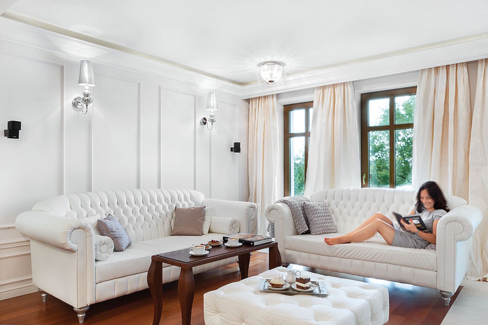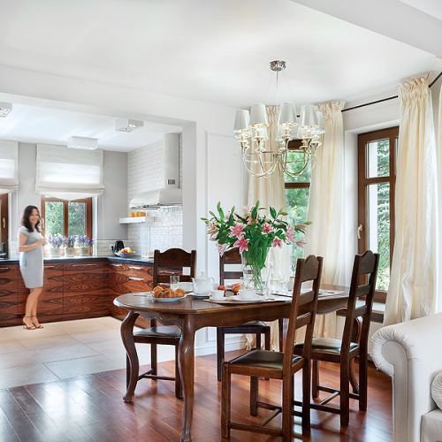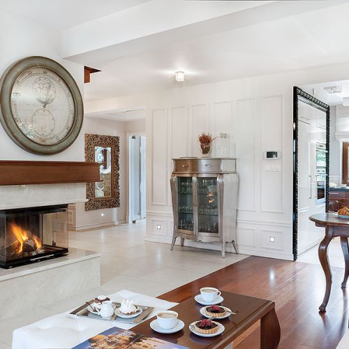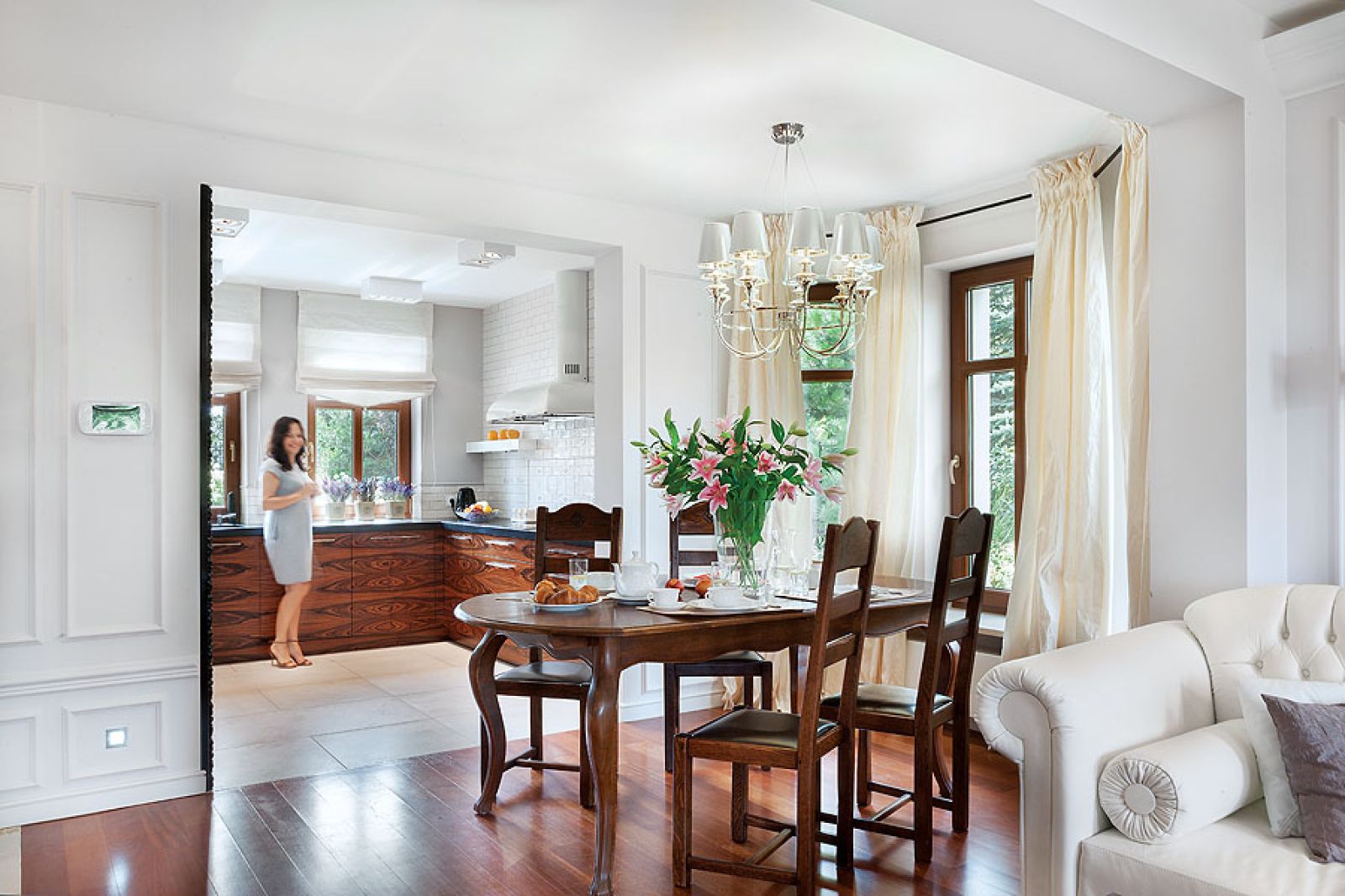 Choć Jarek Jończyk woli wnętrza surowe i nowoczesne, podejmuje się wszelkich wyzwań. Grażyna i Zbyszek nie chcieli niepotrzebnej ekstrawagancji i kopiowania chwilowych mód. Miało być elegancko, przytulnie i to od pierwszego wrażenia, zaraz po przekroczeniu progu. Już w holu mamy zapowiedź tego, co czeka nas dalej. Pikowana skórzana ławeczka, srebrna rama lustra i szklane drzwi z ornamentem.