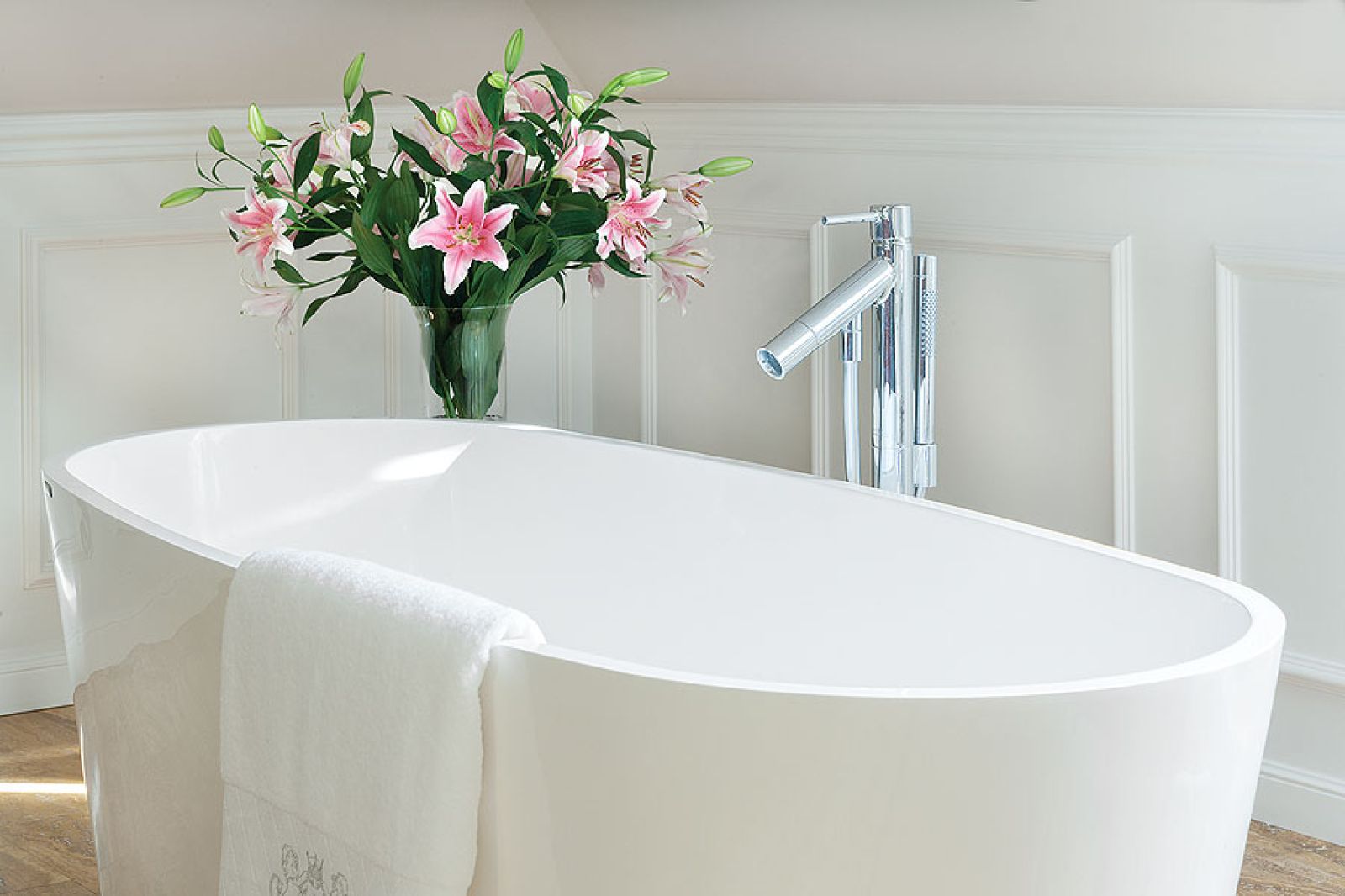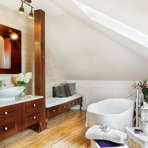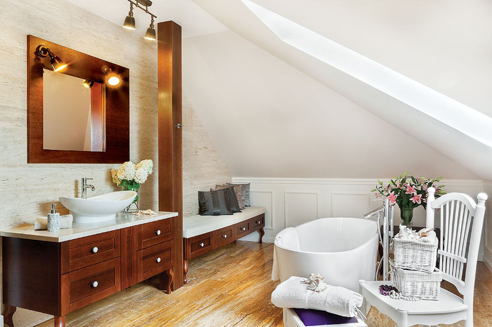 Kolejne rozwiązanie, do którego oboje podchodzili jak do jeża, było bardziej szalone – połączenie sypialni z łazienką. I nie tyle chodziło o wannę naprzeciwko łóżka. Bali się, że ściany i tapicerkę zaatakuje wilgoć. Jarek twierdził jednak, że dobra wentylacja się z tym upora. Oczywiście miał rację. – Siedzę w tej wannie codziennie – opowiada Grażyna – często oglądam tu telewizję. Para, nawet ta z sauny, nigdy nie była problemem.