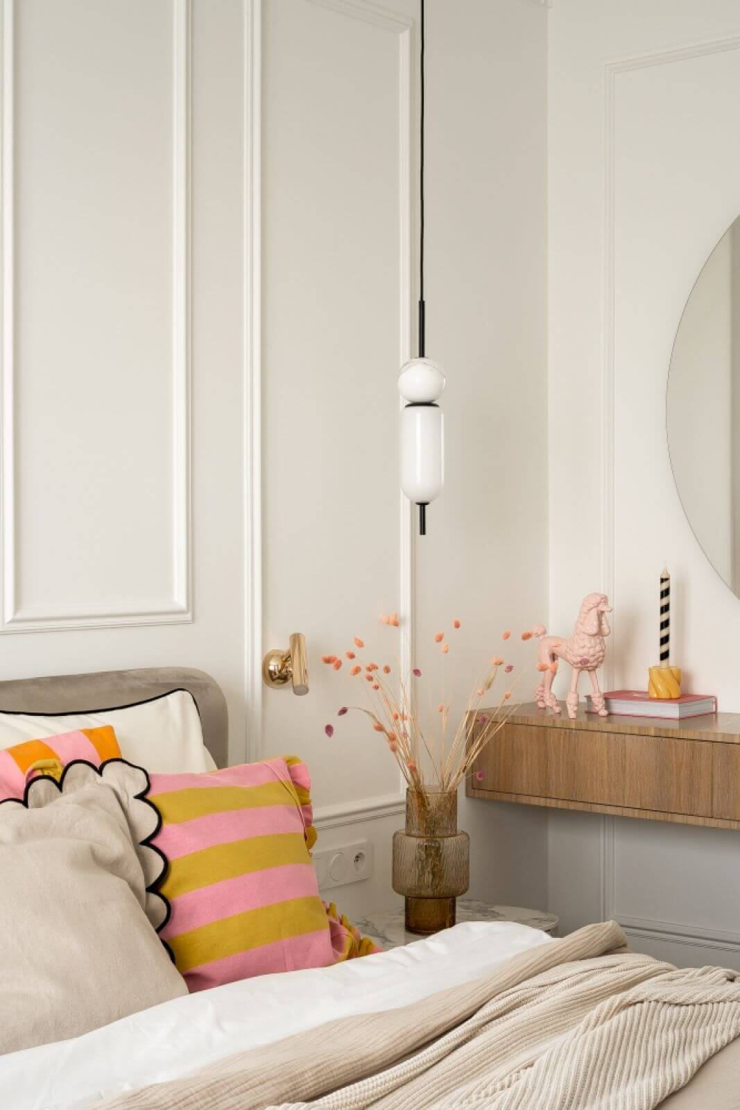 Odrobina słodyczy – stonowane barwy i pastelowe akcenty w eleganckim kobiecym mieszkaniu