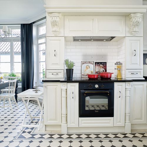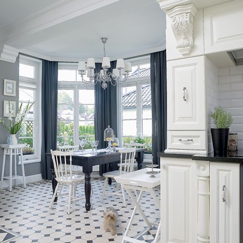 U Kasi w Walendowie pod Warszawą jest klasycznie, po angielsku: w georgiańskim salonie ciemnoszare ściany z białymi, stylowymi sztukateriami. W holu i kuchni wzór wiktoriański – kafle na podłodze. Na płytki, które przyjechały z angielskiej manufaktury, trzeba było czekać prawie pół roku. Ale kuchni z wielkim okapem nie powstydziłby się nawet XIX-wieczny manor house.